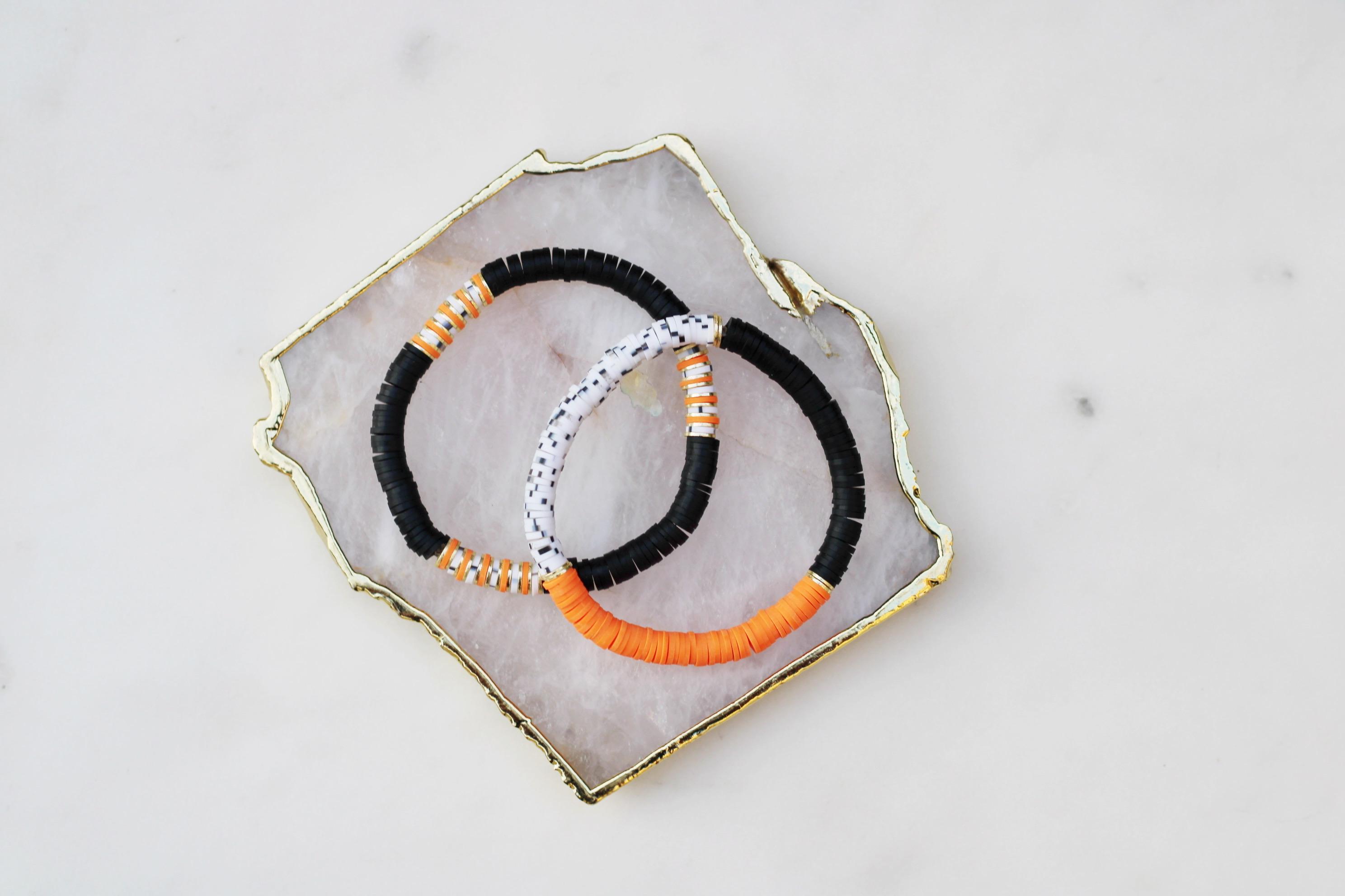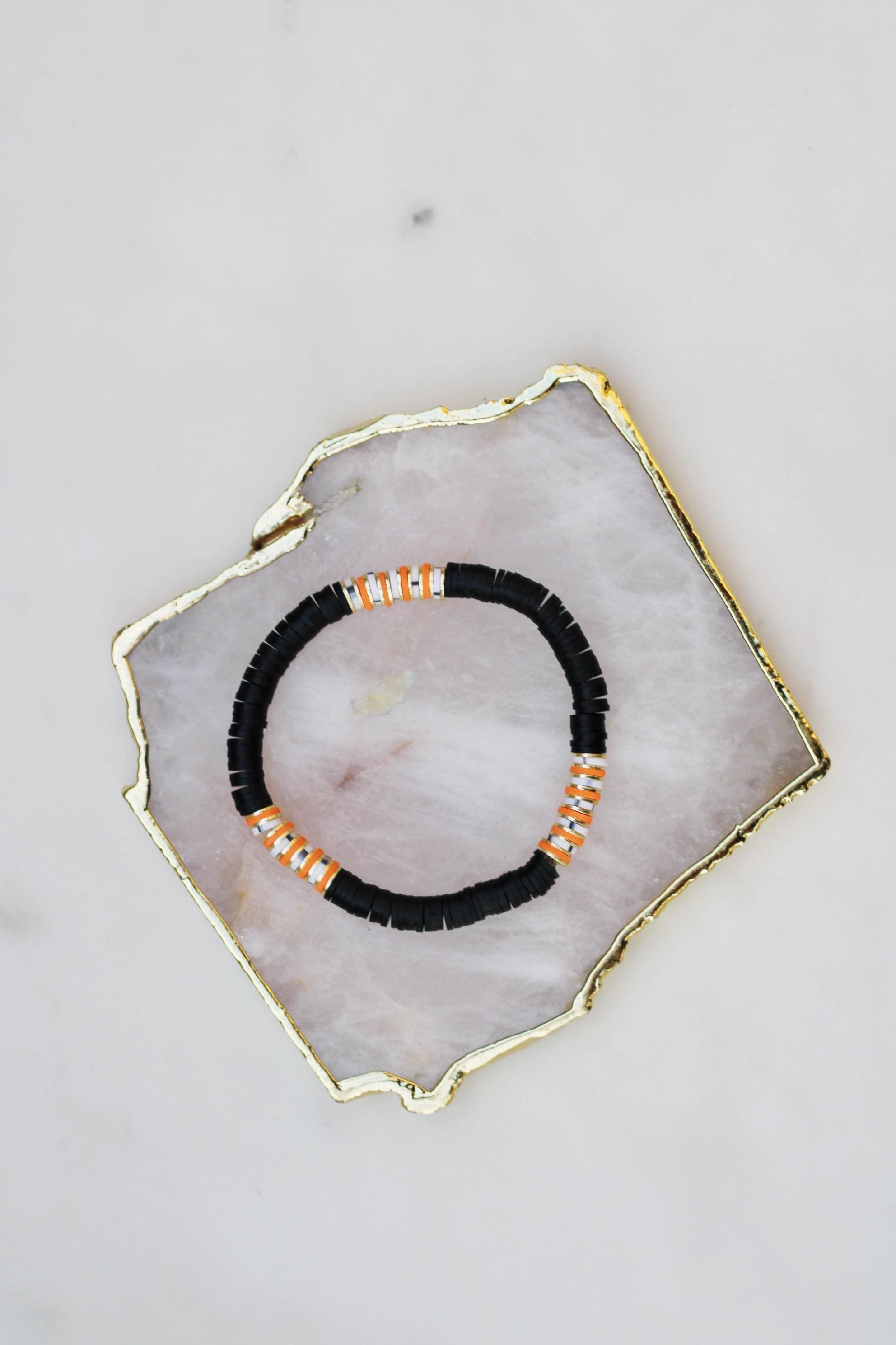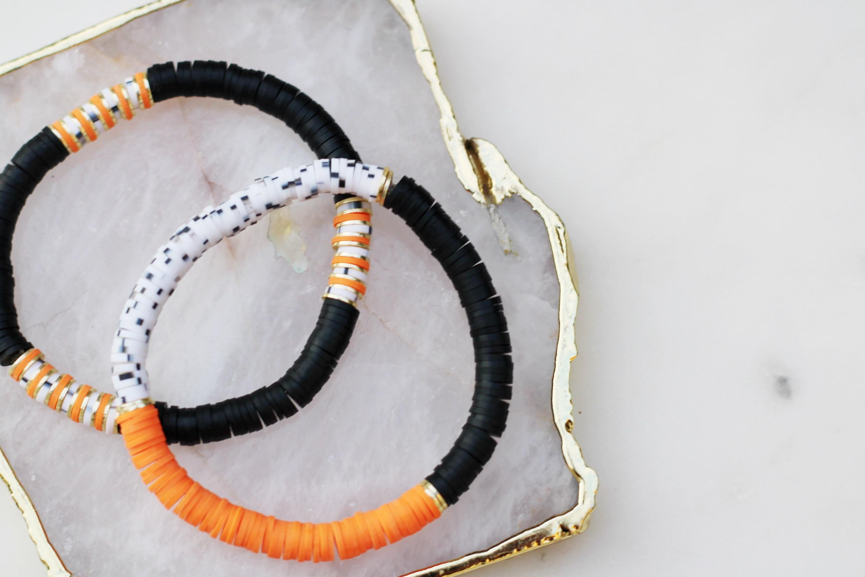Listing is for one (1) bracelet containing 6mm vinyl heishi beads and accented with gold or silver disc/heishi beads. Both options are available with gold or silver accents.