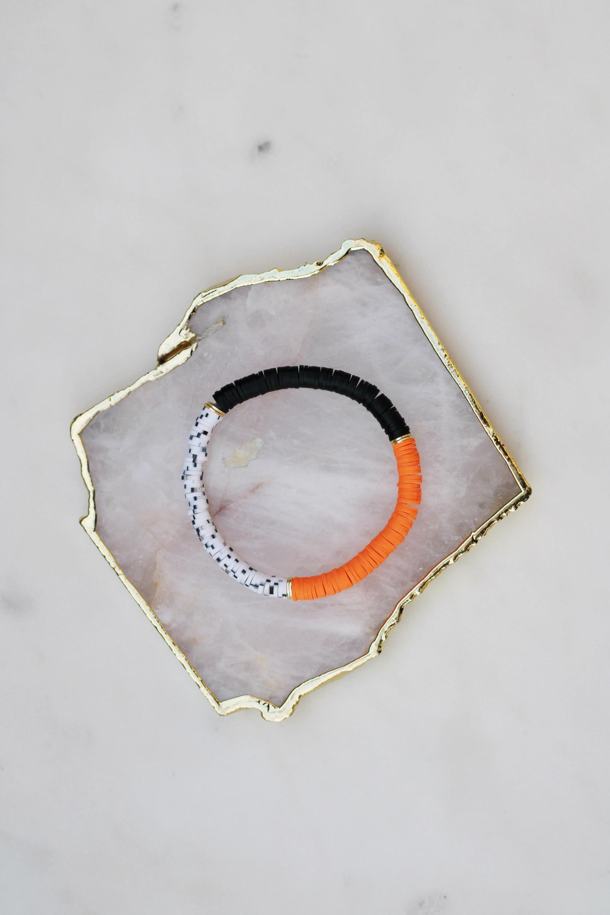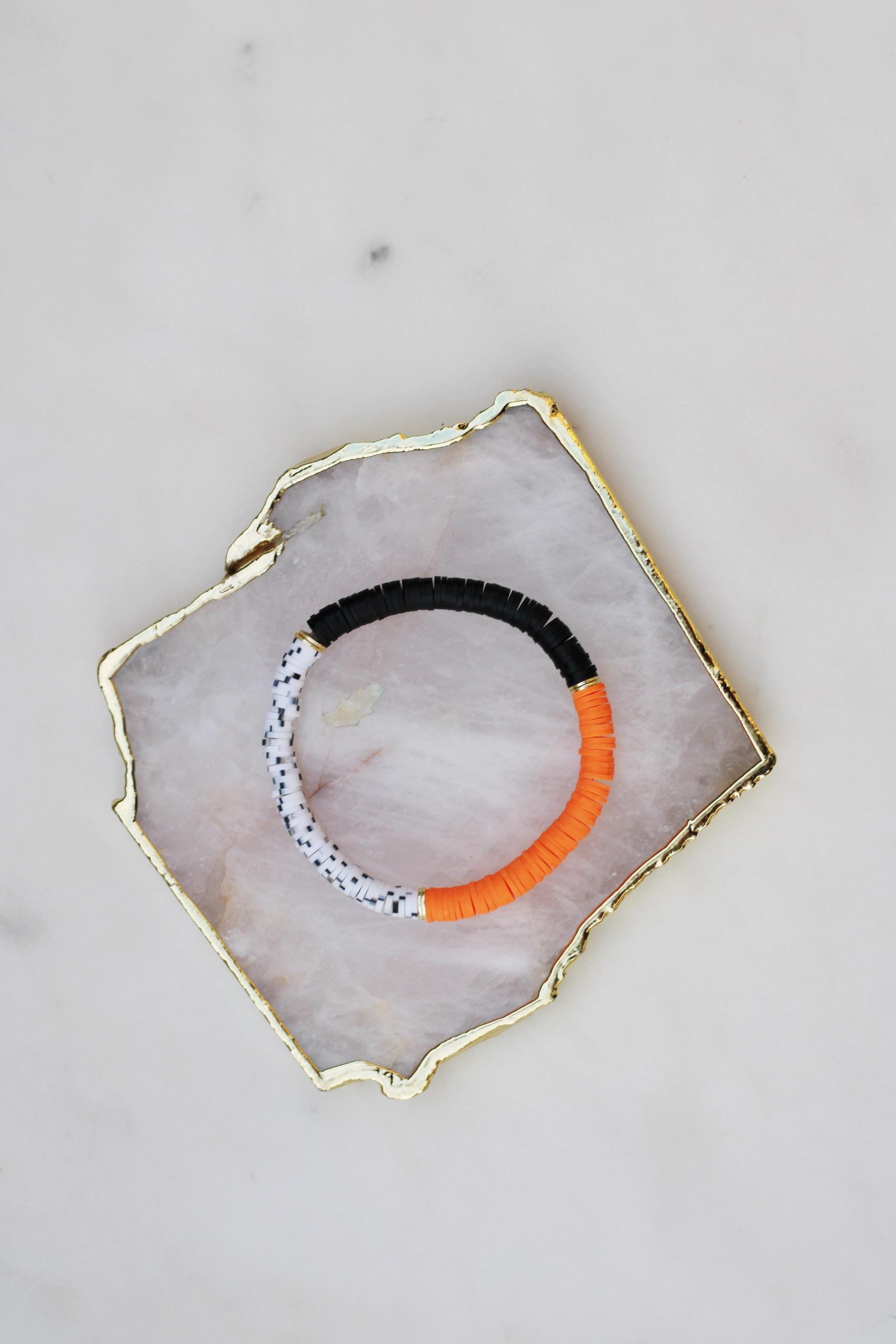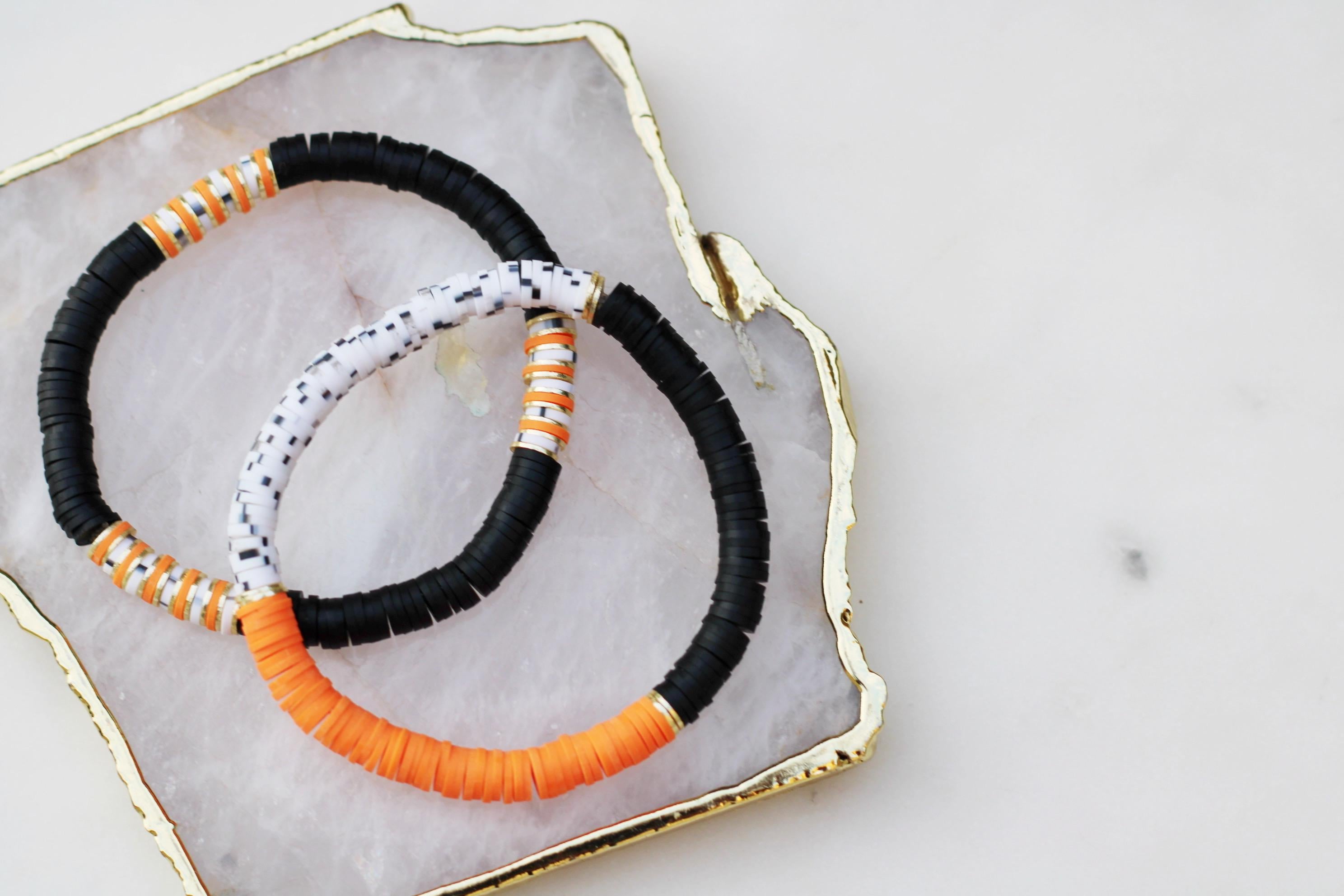Listing is for one (1) bracelet containing 6mm vinyl heishi beads and accented with gold or silver disc/heishi beads. Both options are available with gold or silver accents.