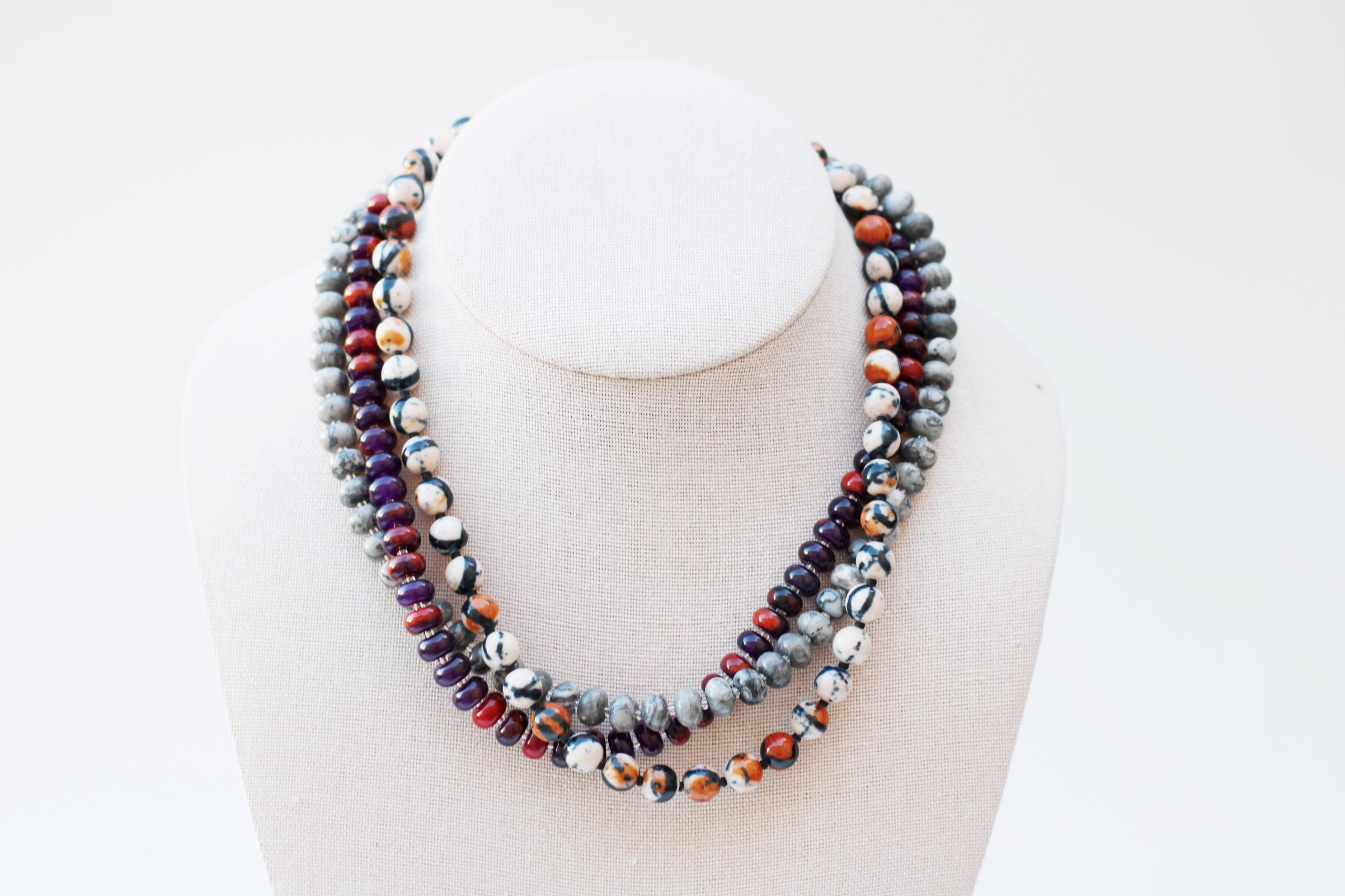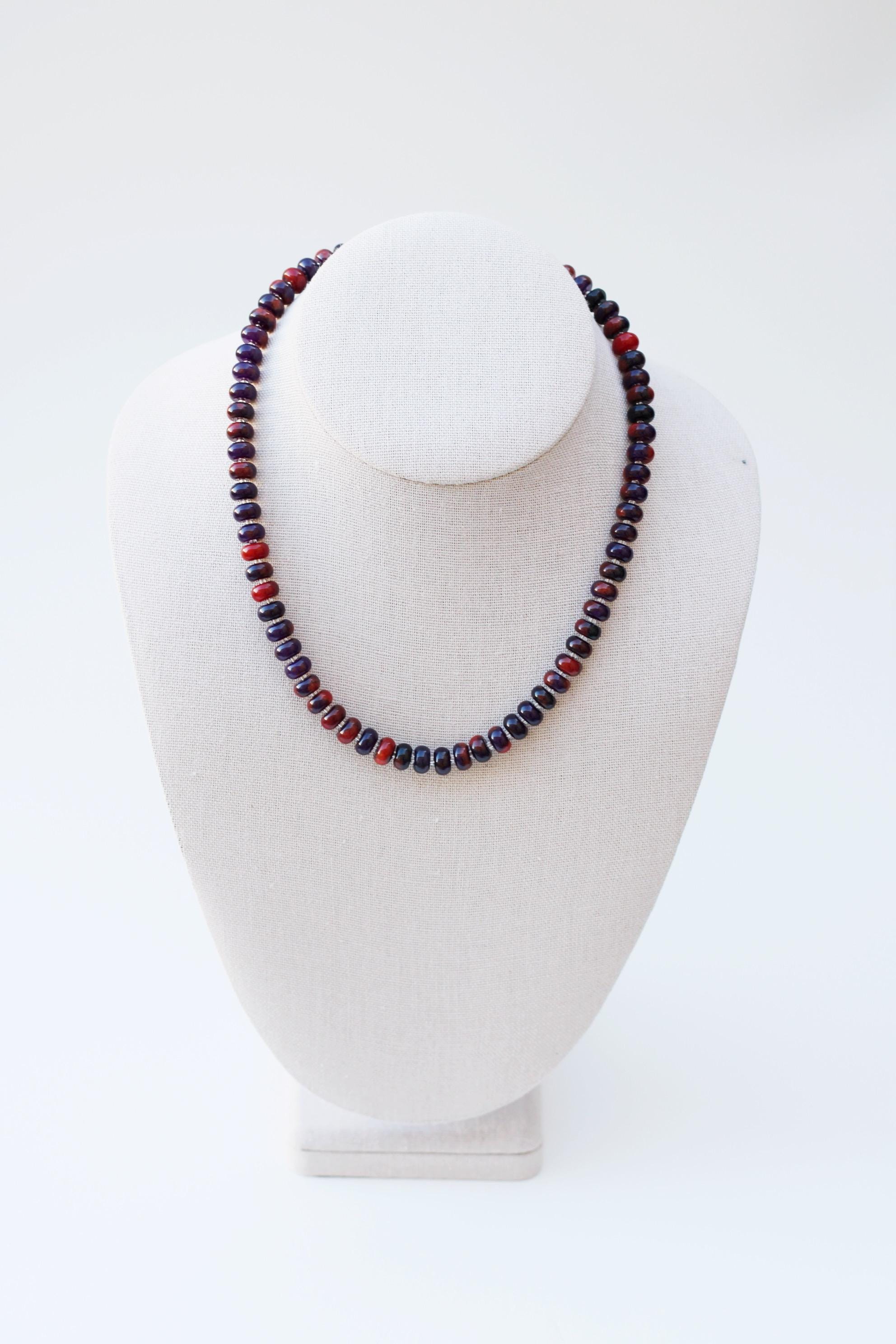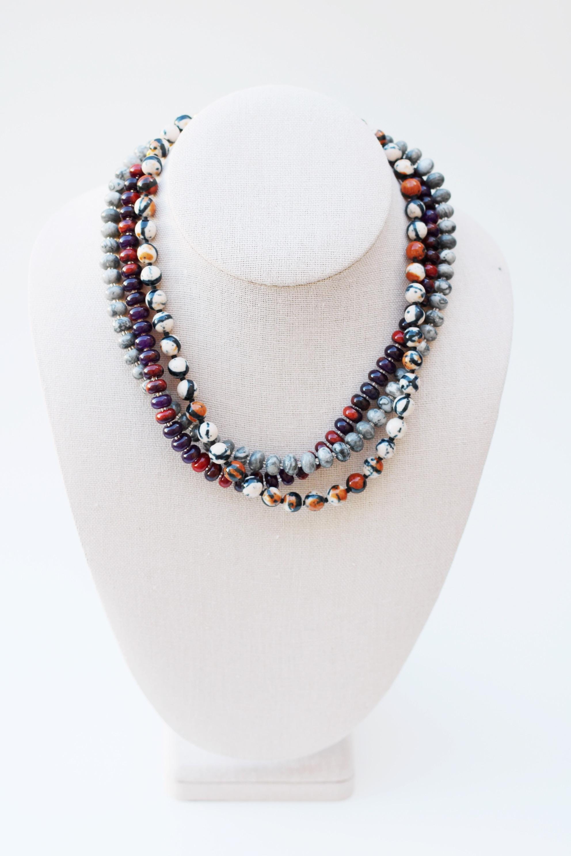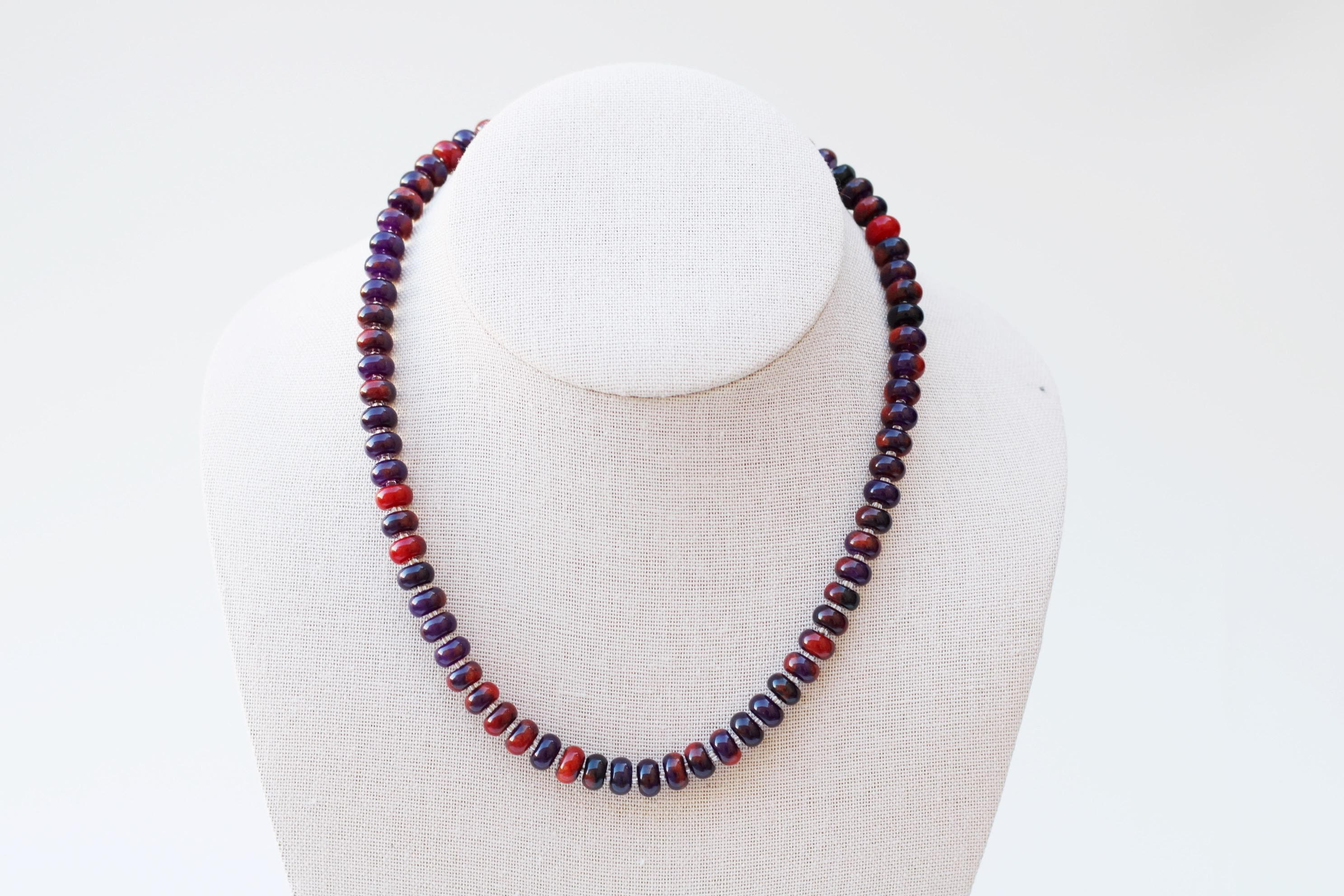 A gemstone bead necklace. Uniquely crafted with jade rondelle beads and your choice of plated hardware color and spacer bead (see photo for options).