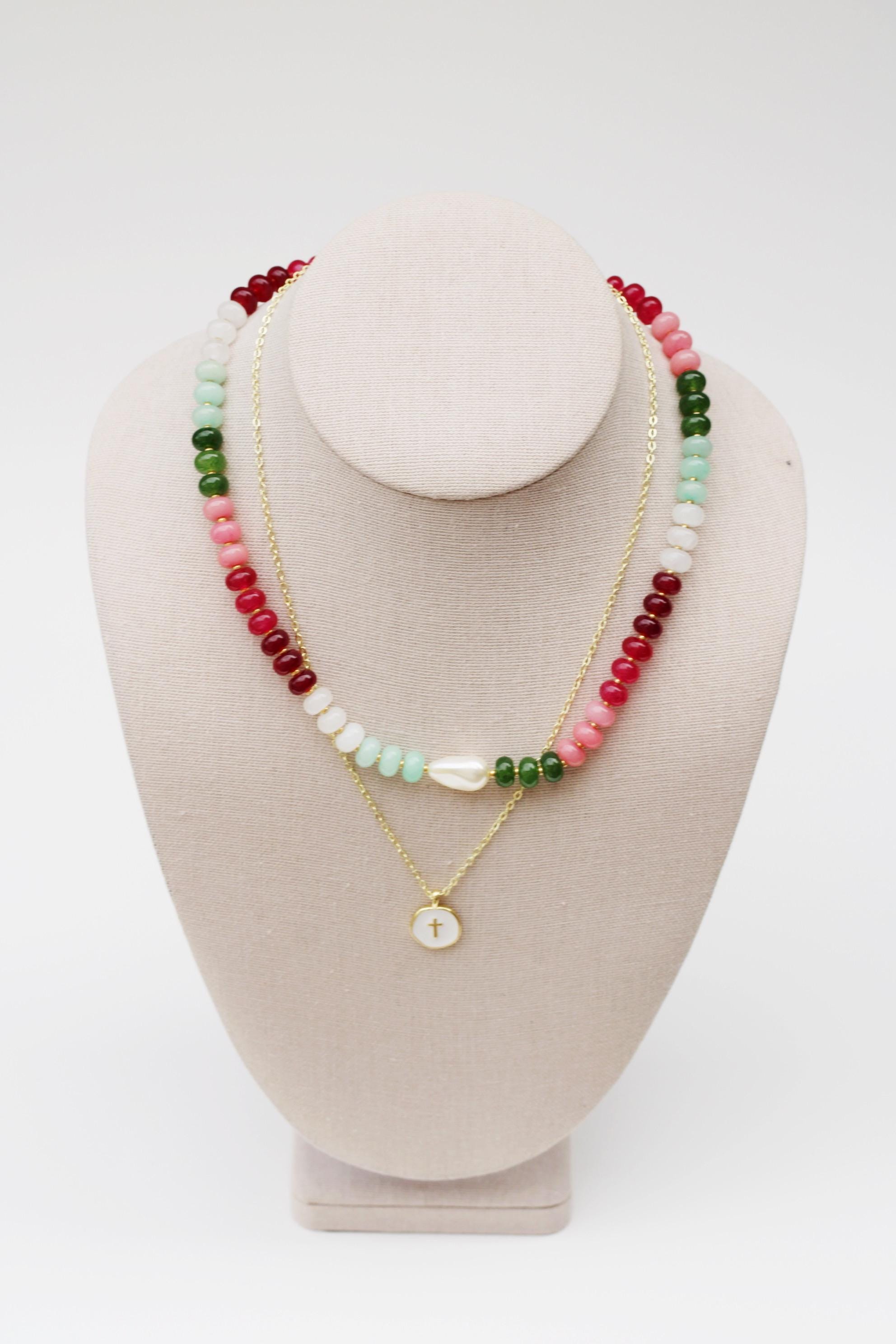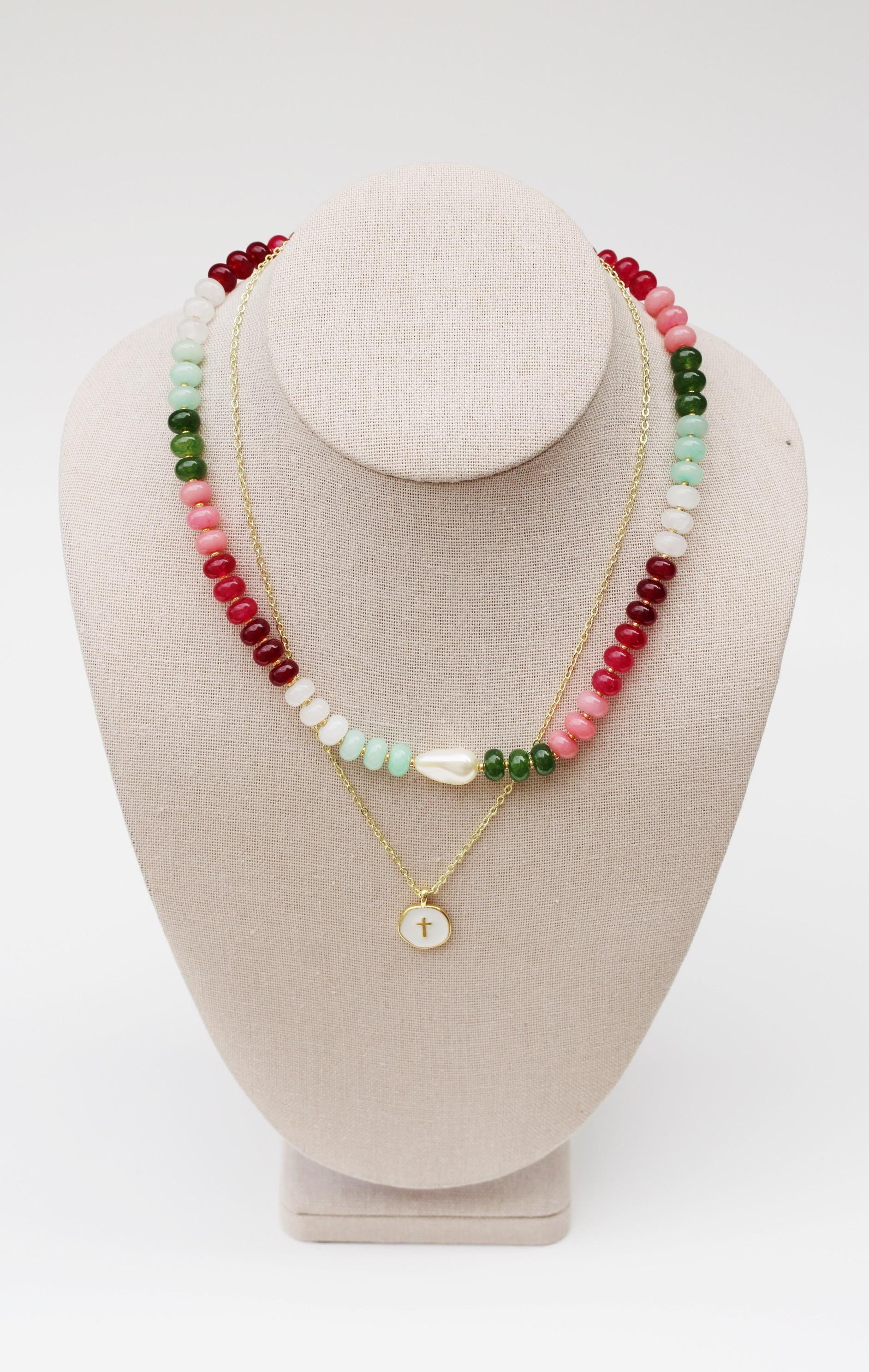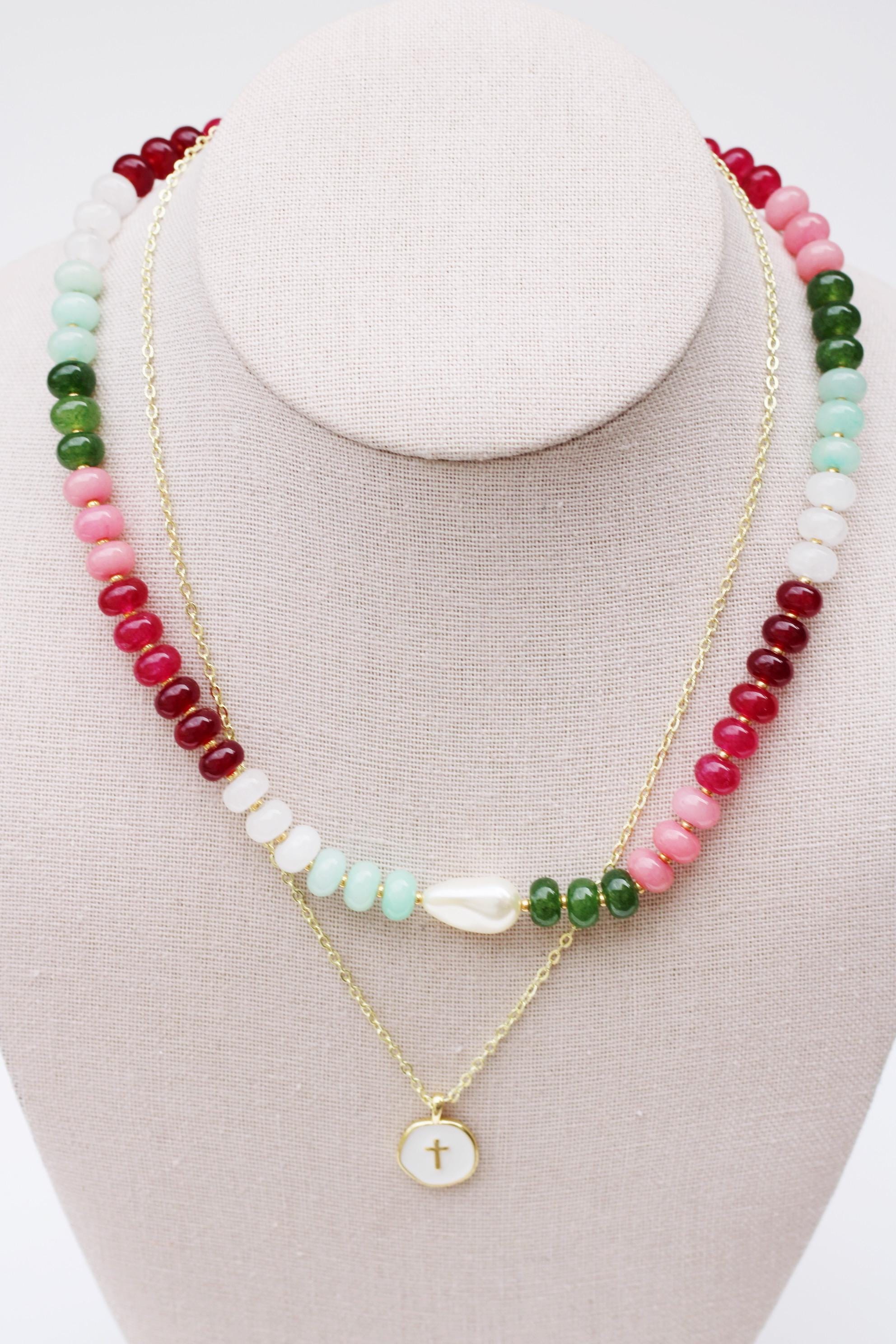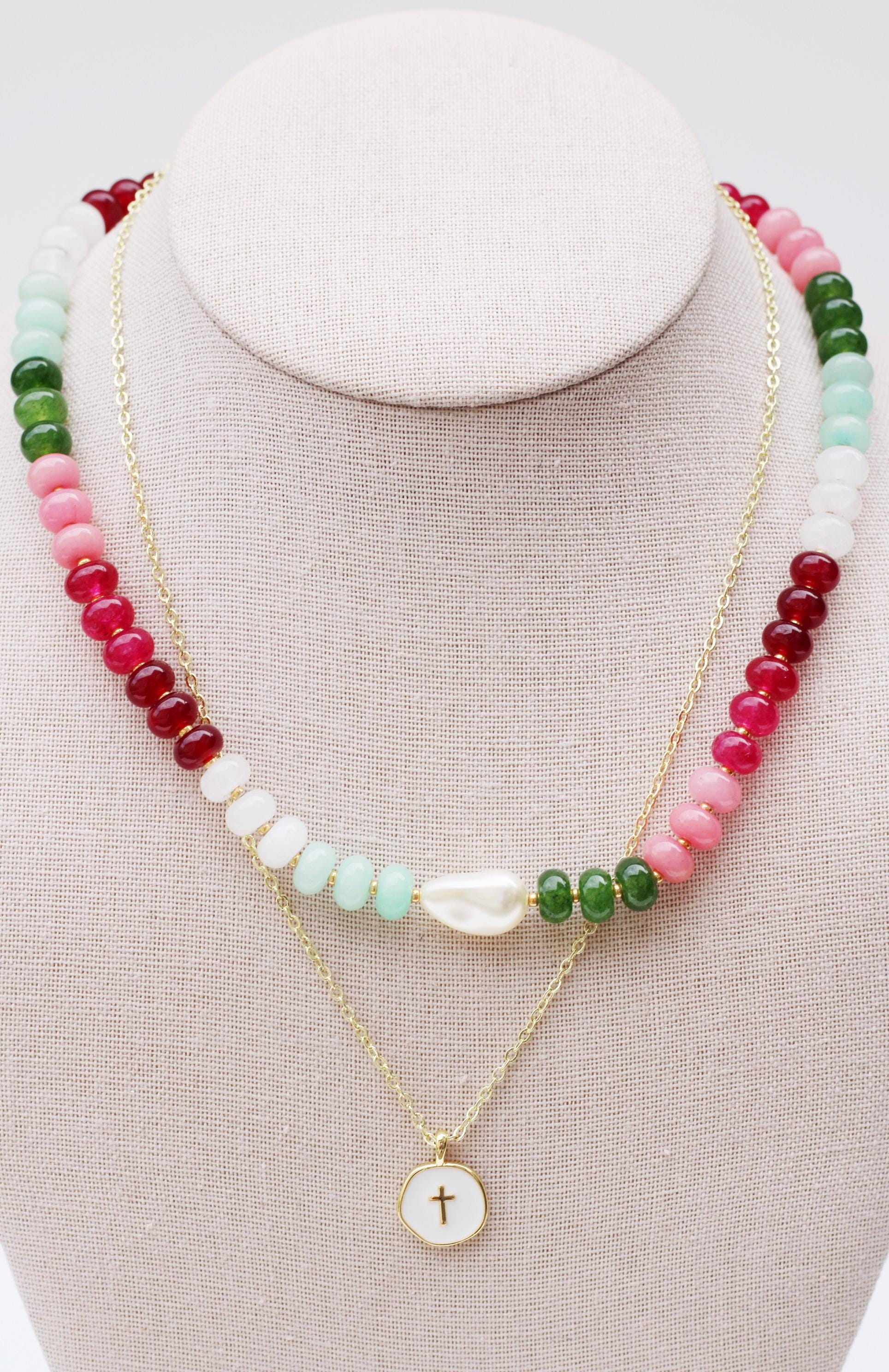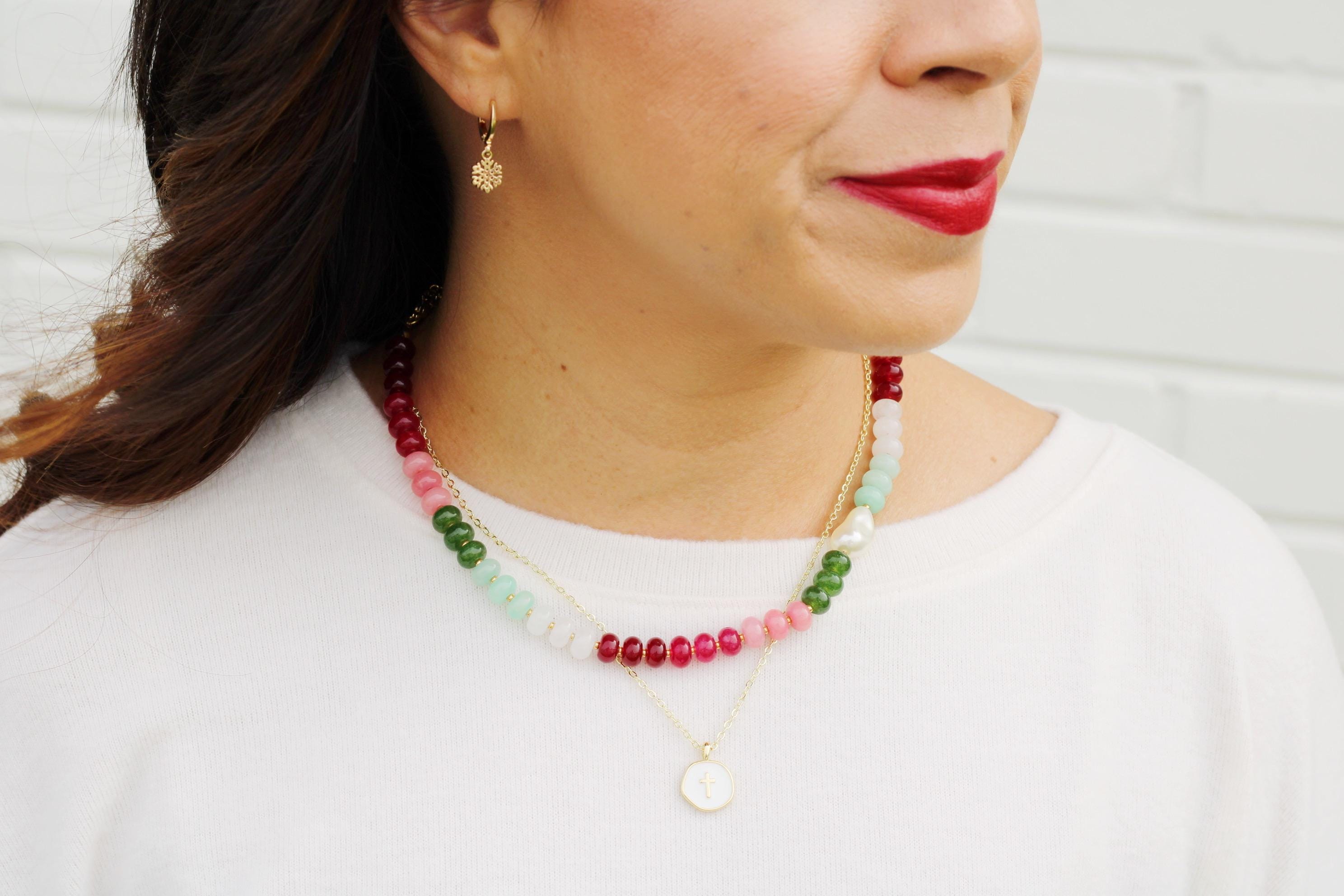 A pretty, dainty charm necklace. An 18" sparkly 14k gold plated necklace chain adorned with a 18k gold plated white enamel cross charm.