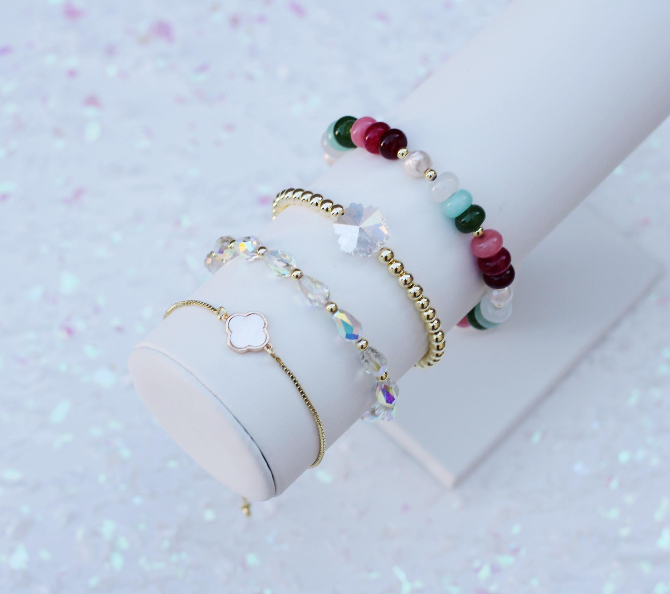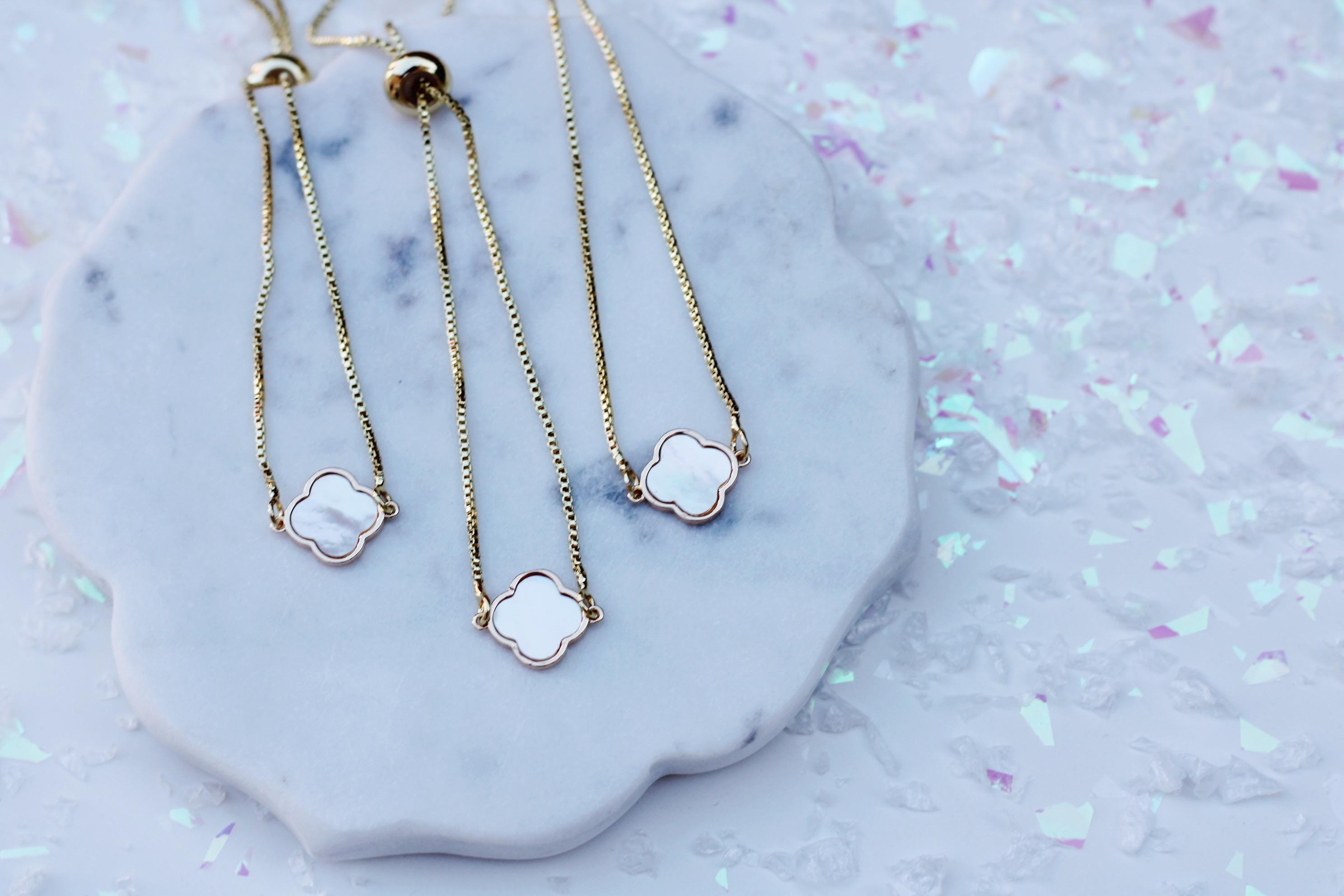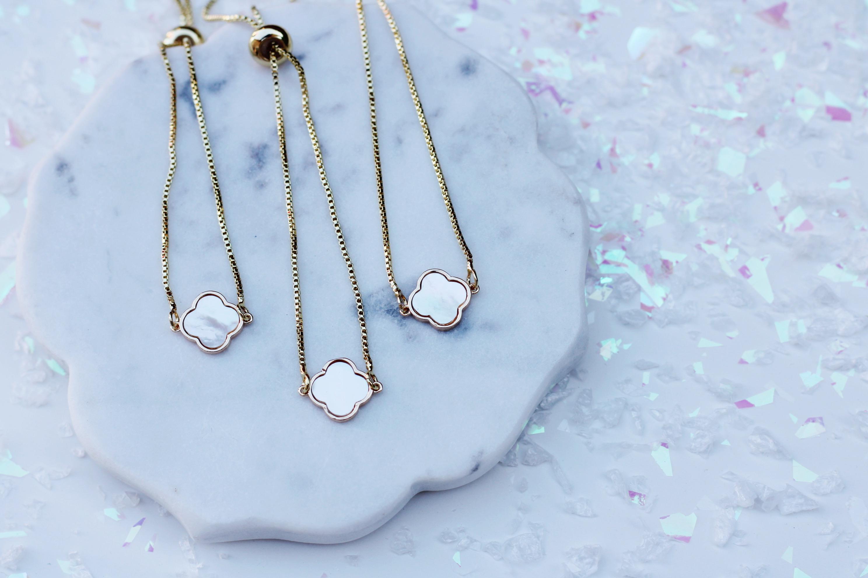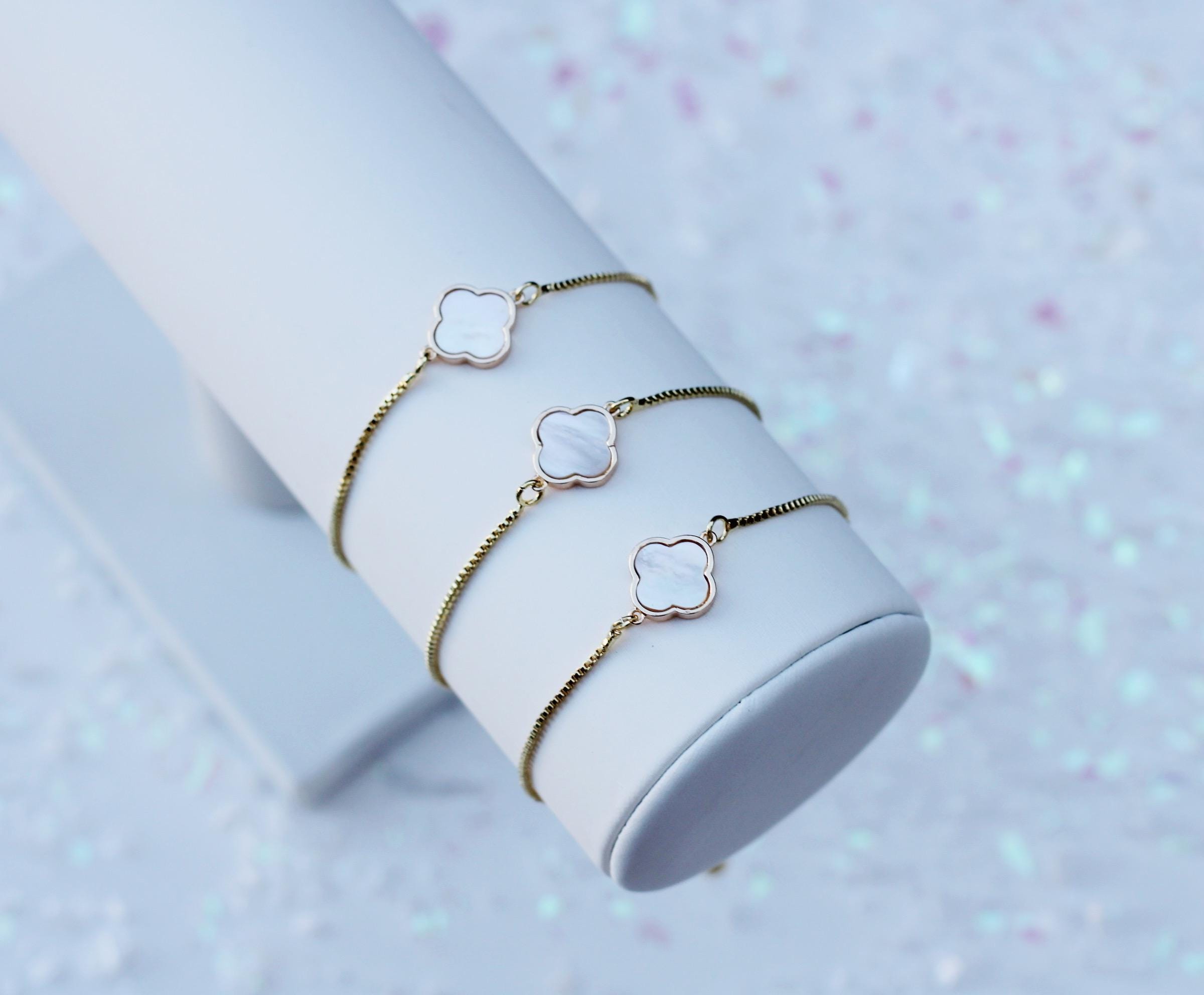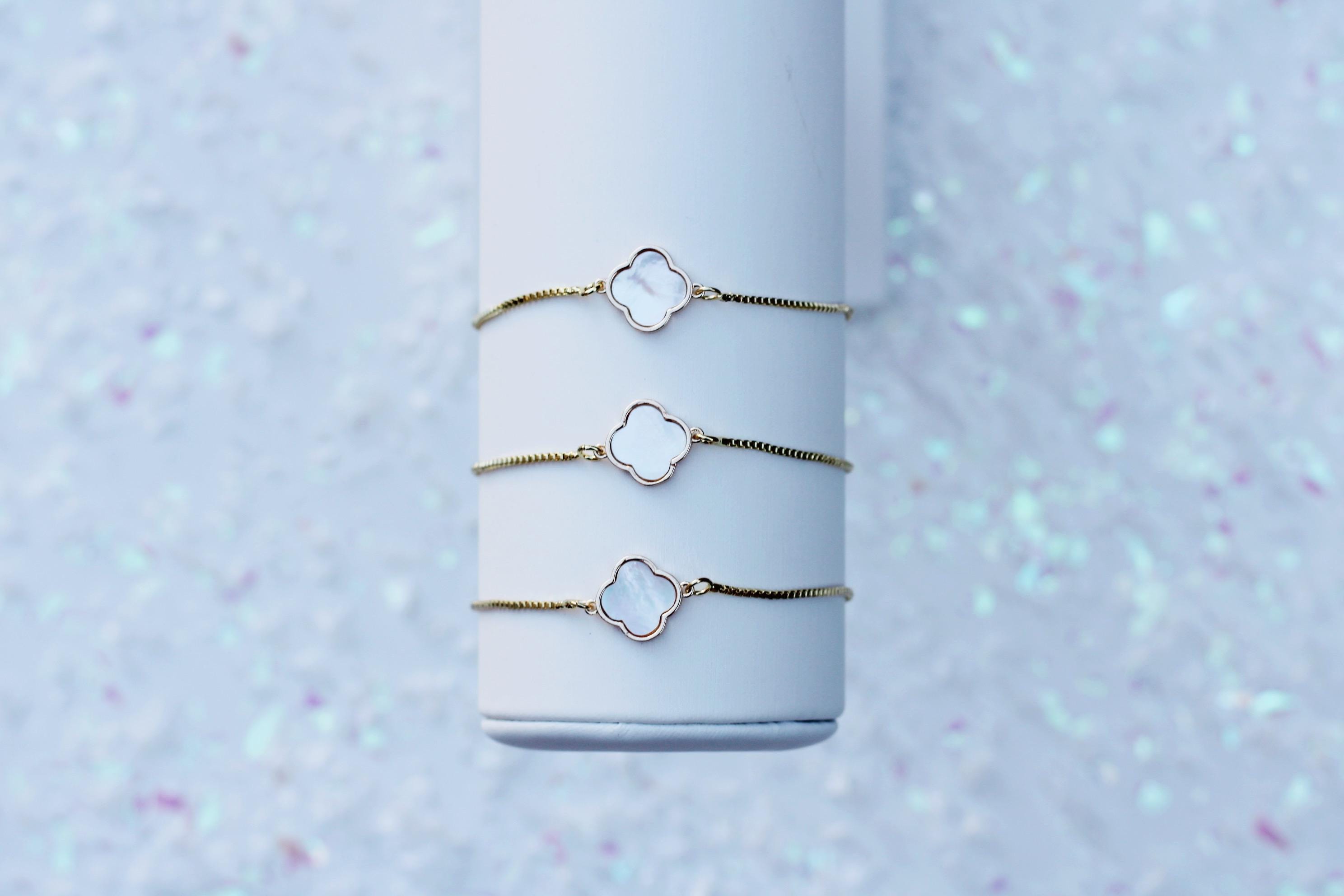 This listing is for ONE adjustable bolo bracelet with a 18k gold filled mother of pearl clover bead.