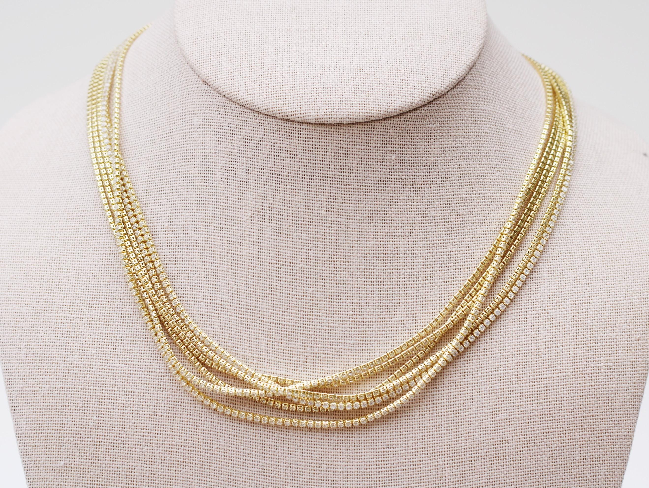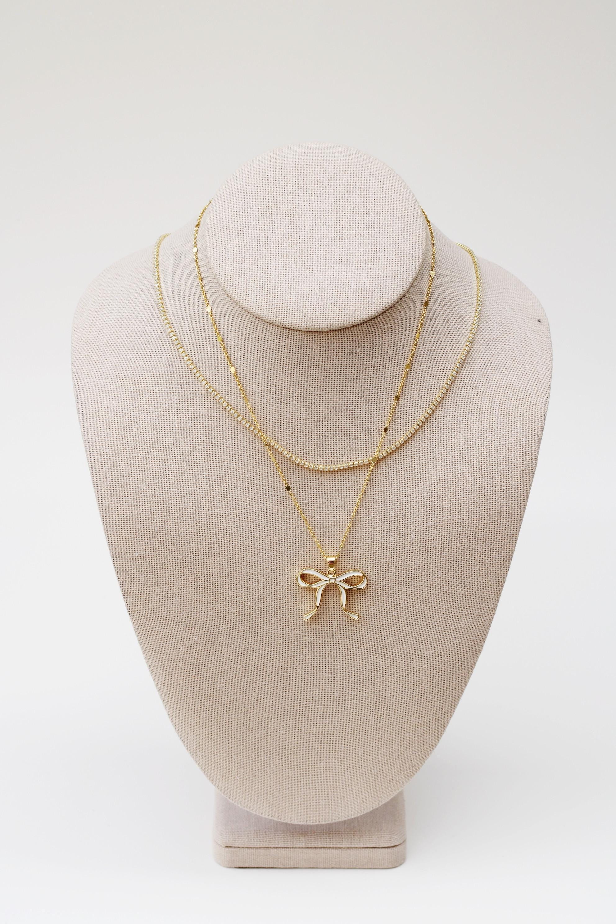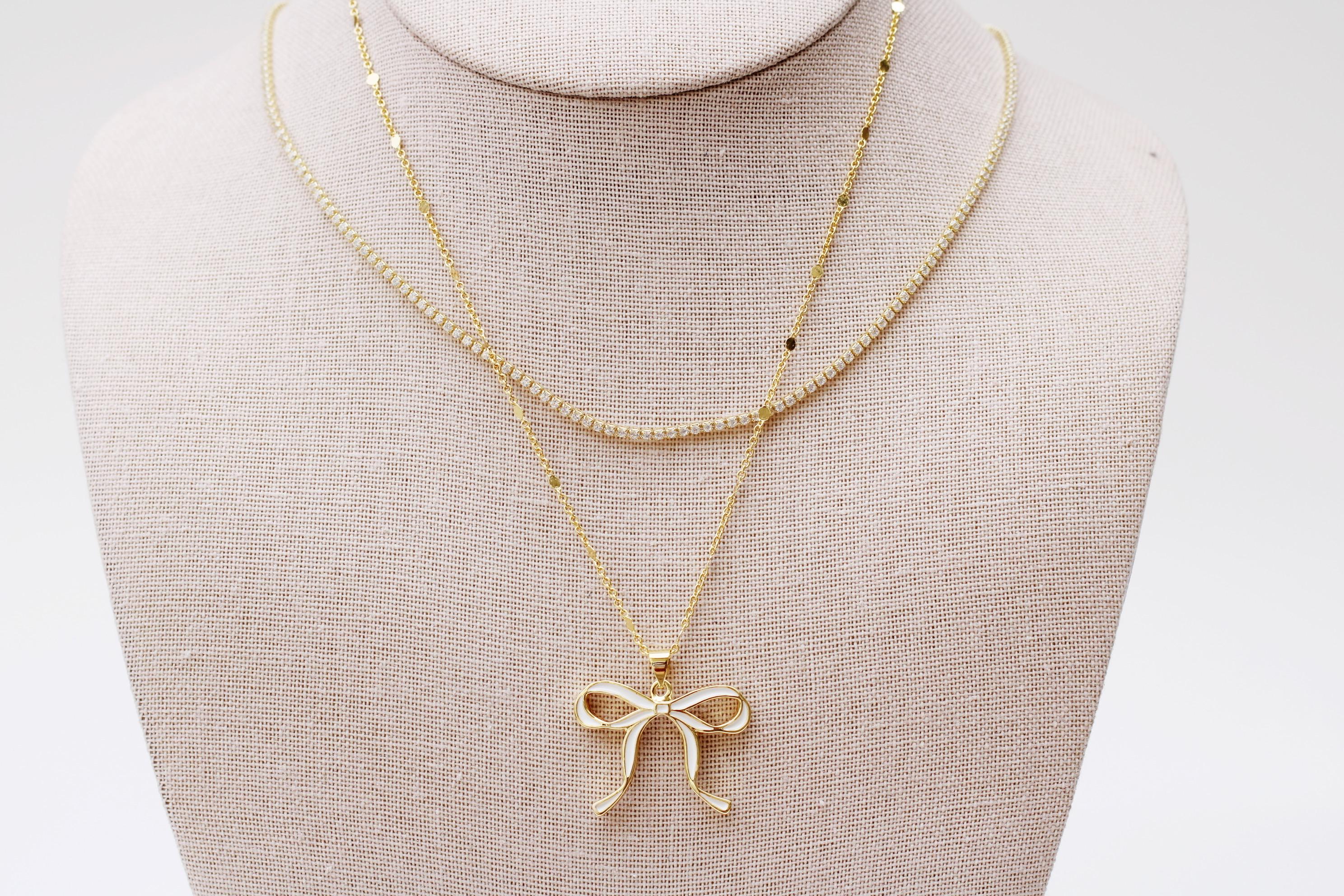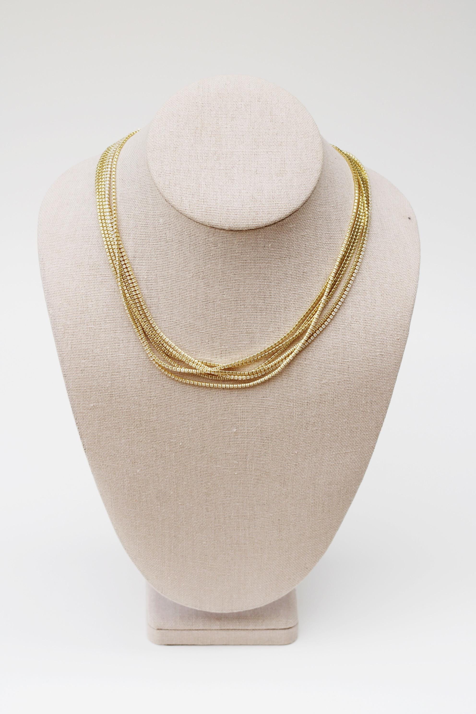 A pretty, dainty tennis necklace. An 18" sparkly 24k gold filled necklace chain with cubic zirconia crystals.
