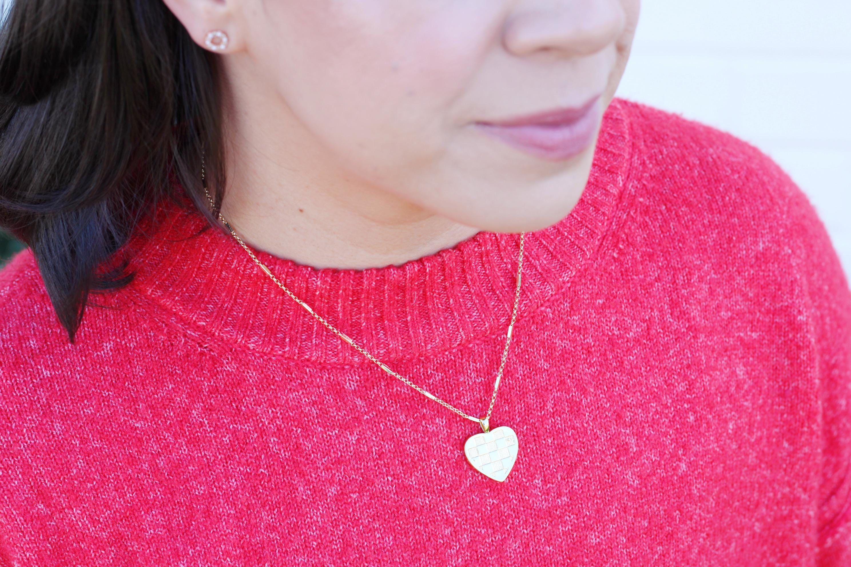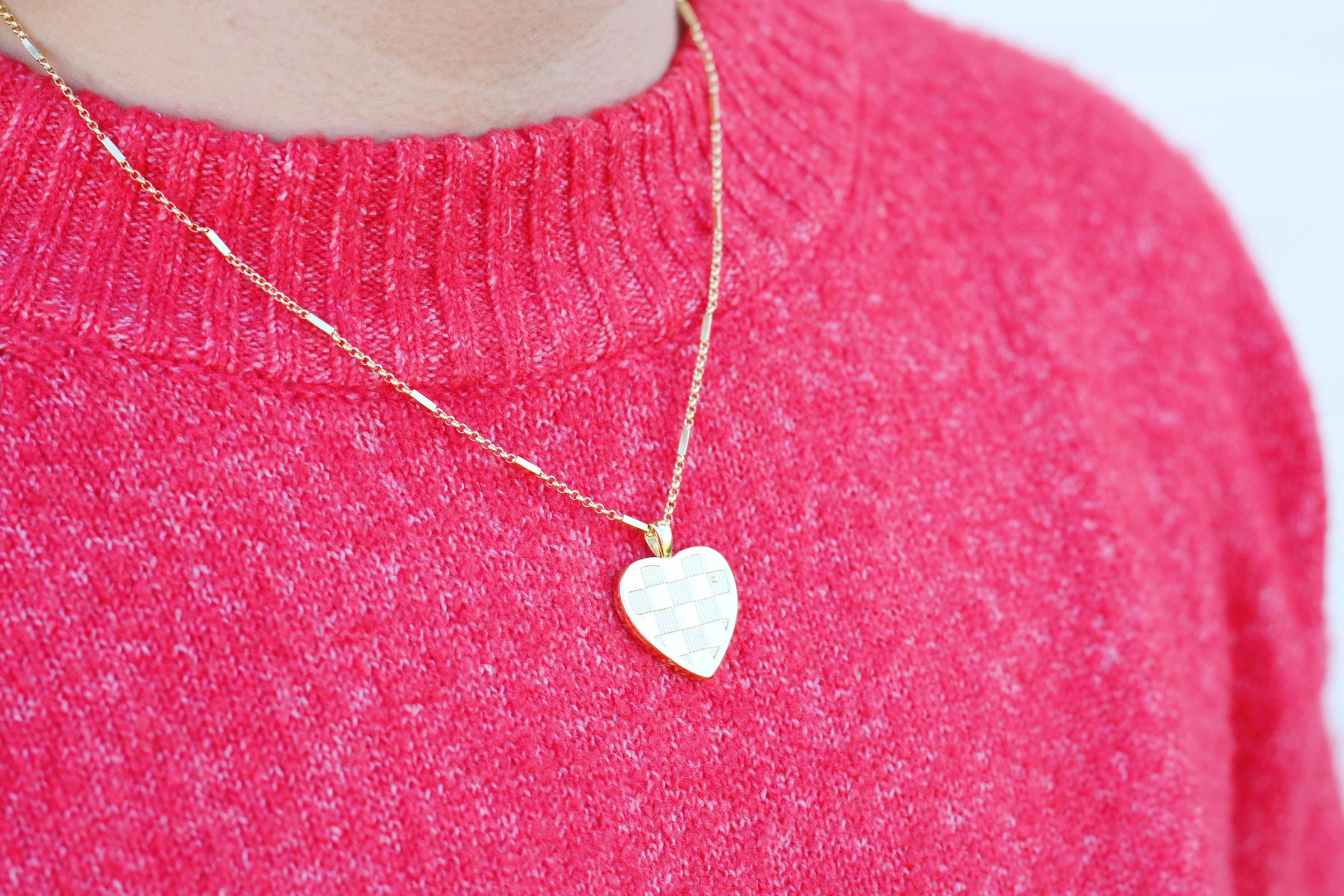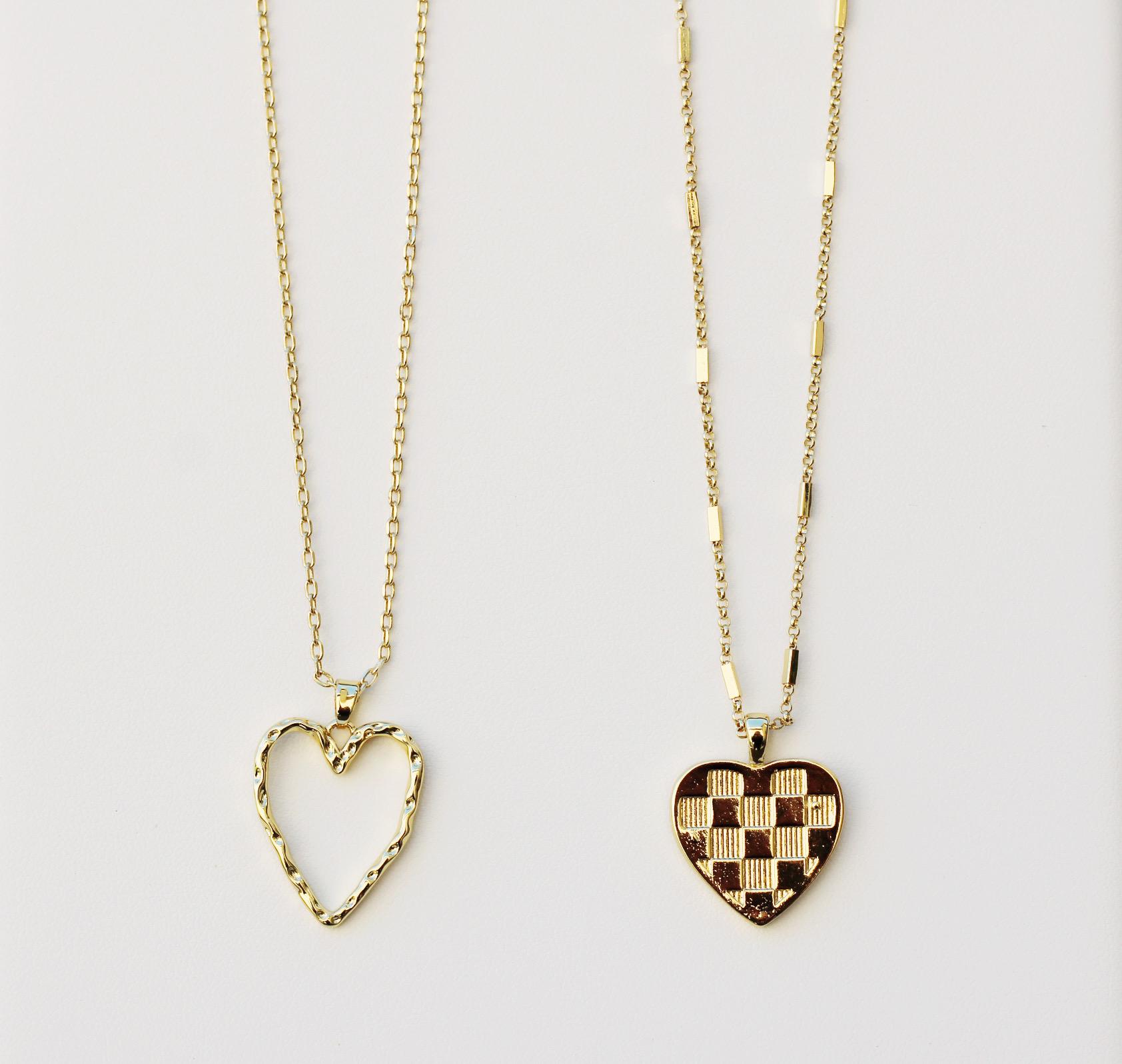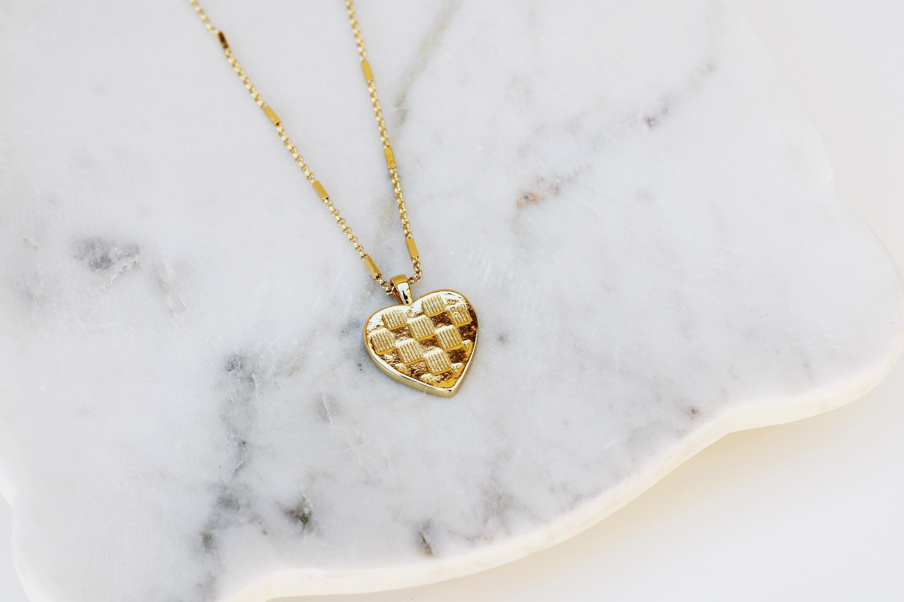 A sparkly 14k gold plated chain necklace chain adorned with a 18k gold filled heart charm.