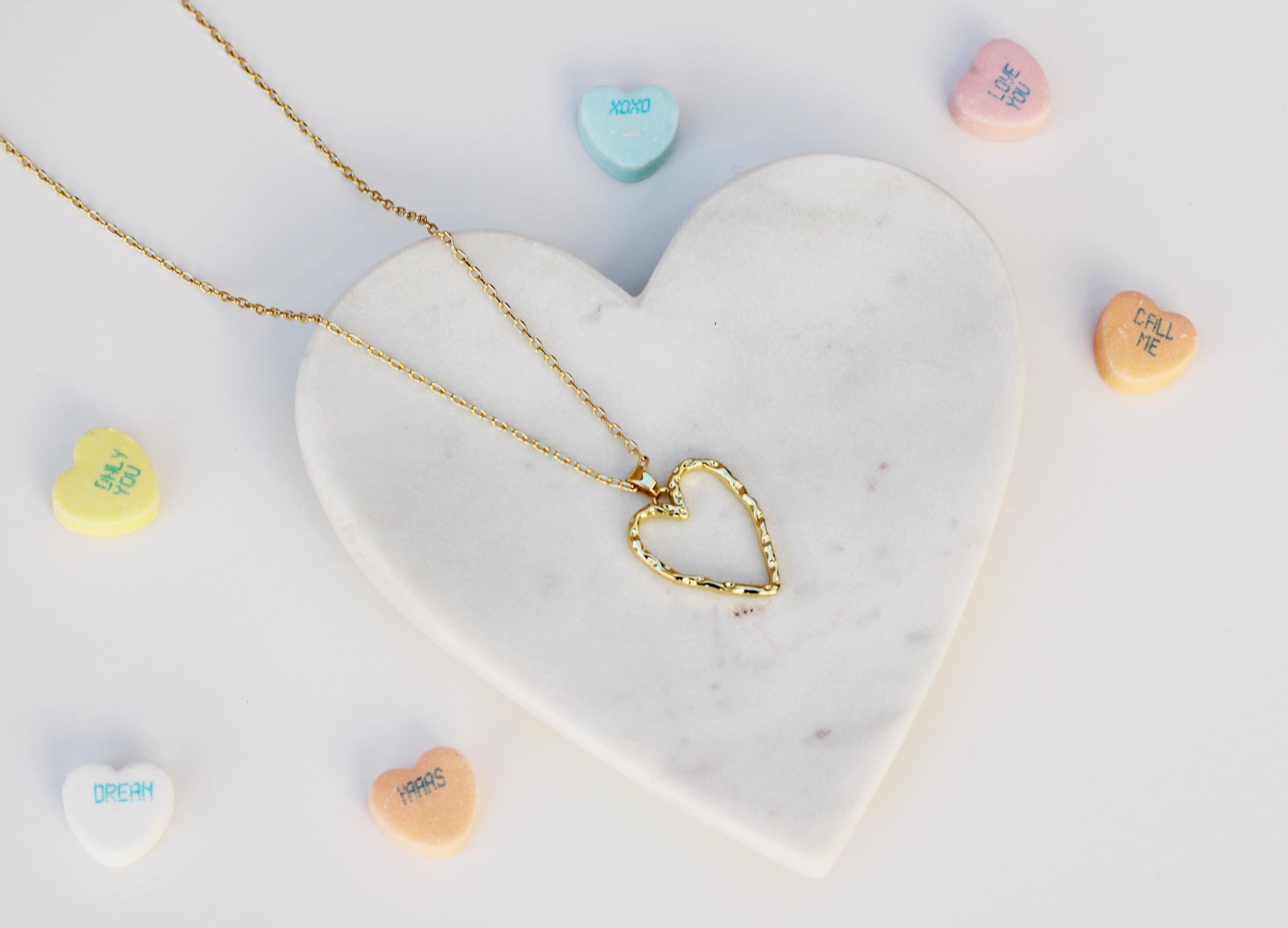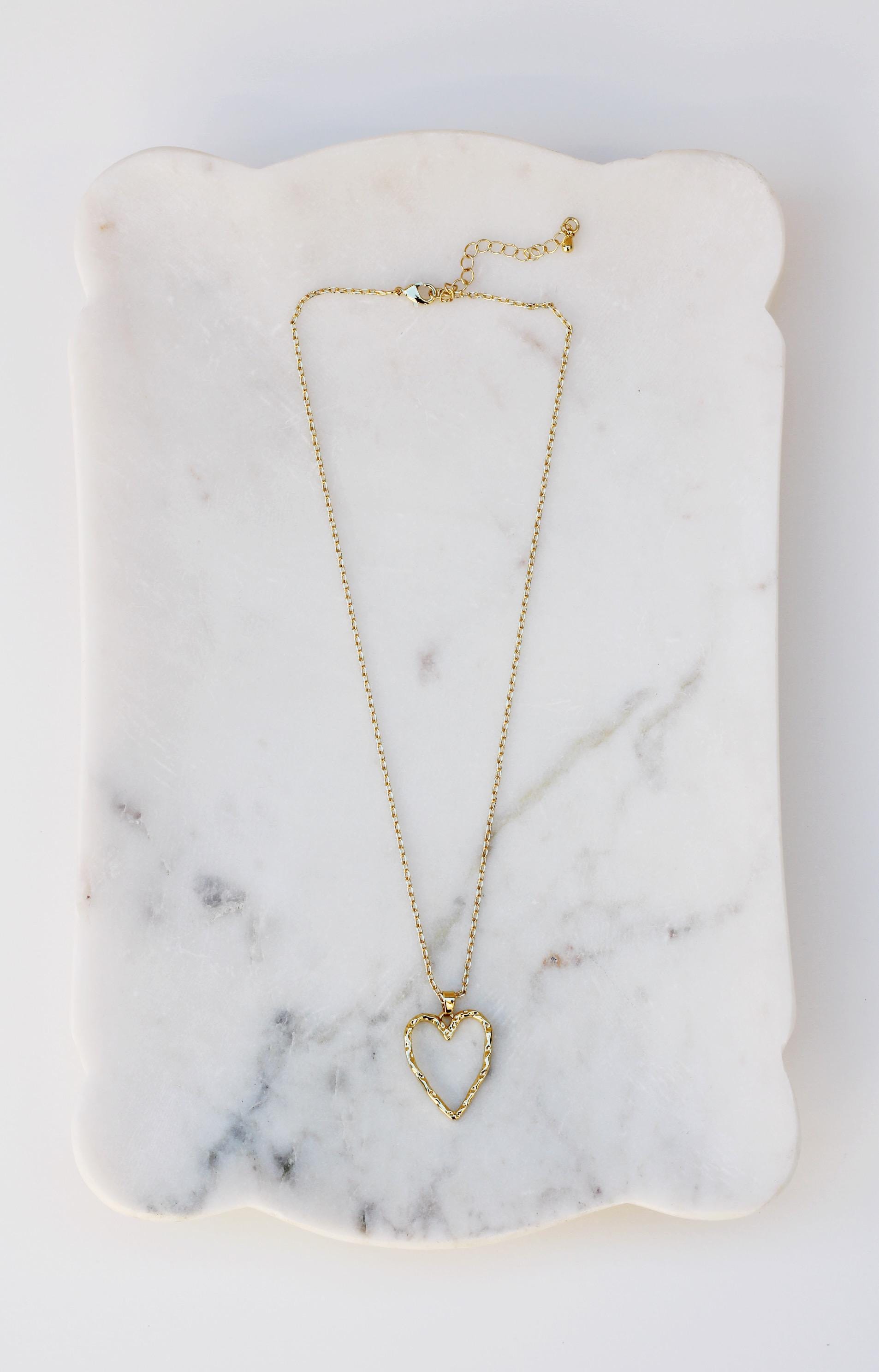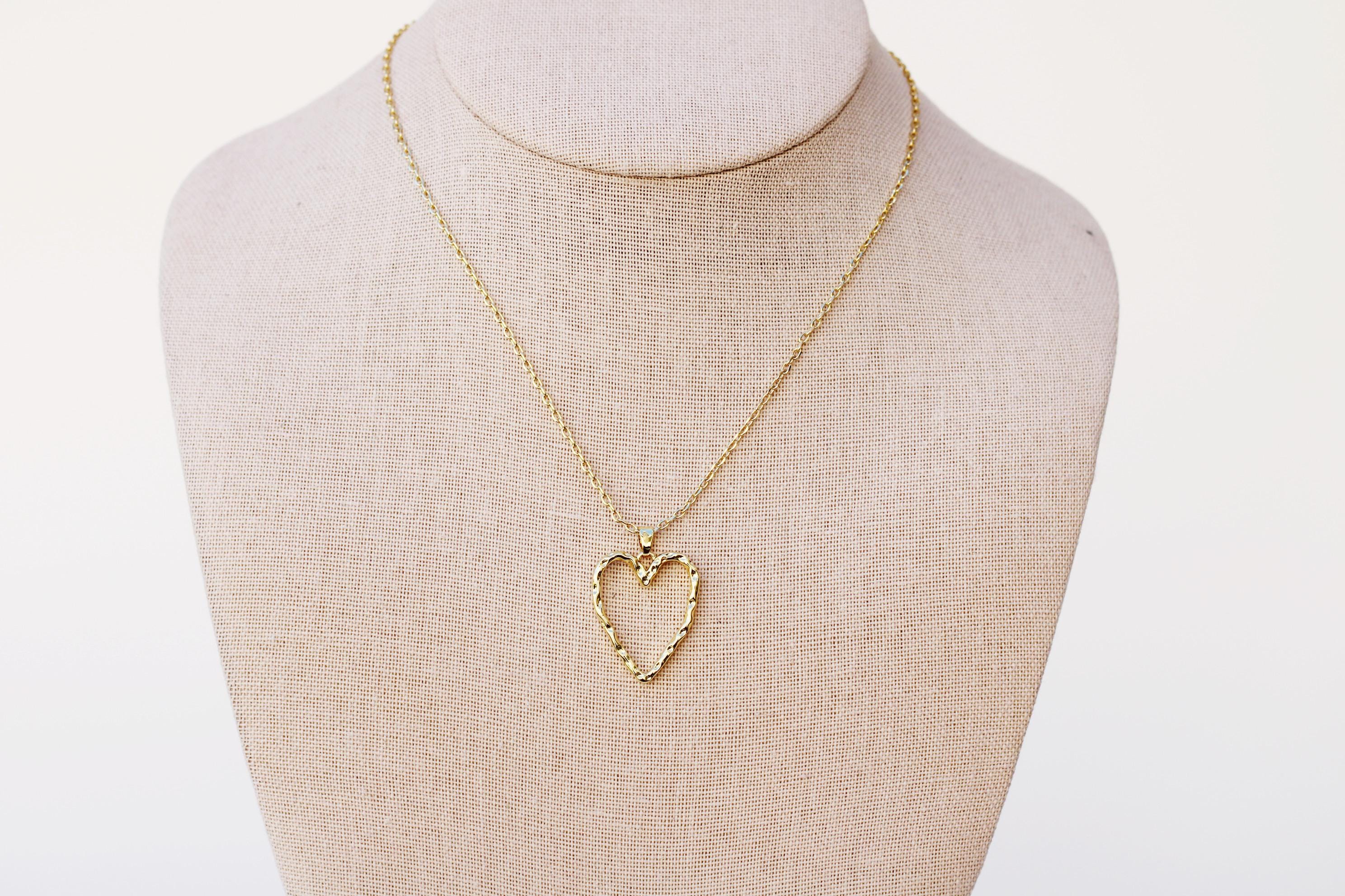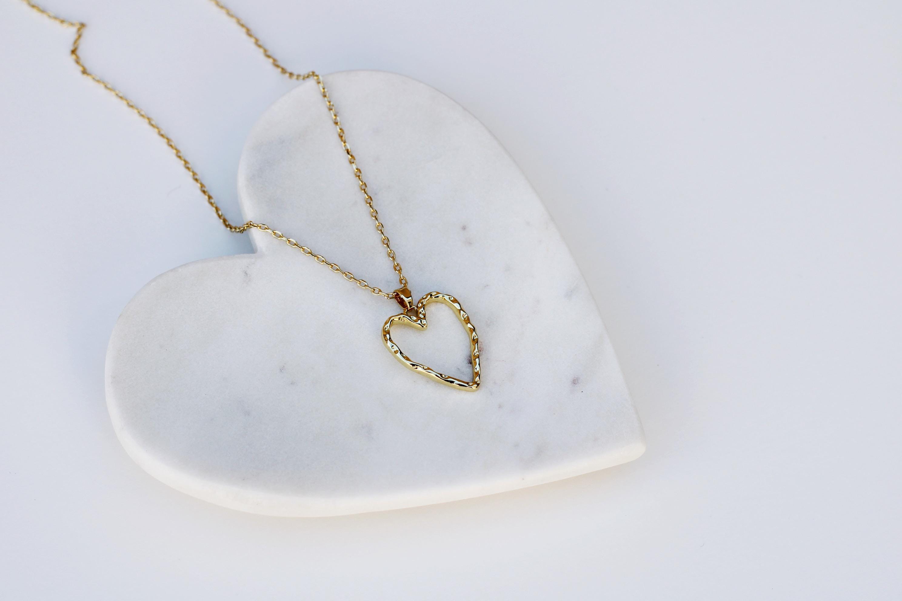 A sparkly 14k gold plated chain necklace chain adorned with a 18k gold filled heart charm.