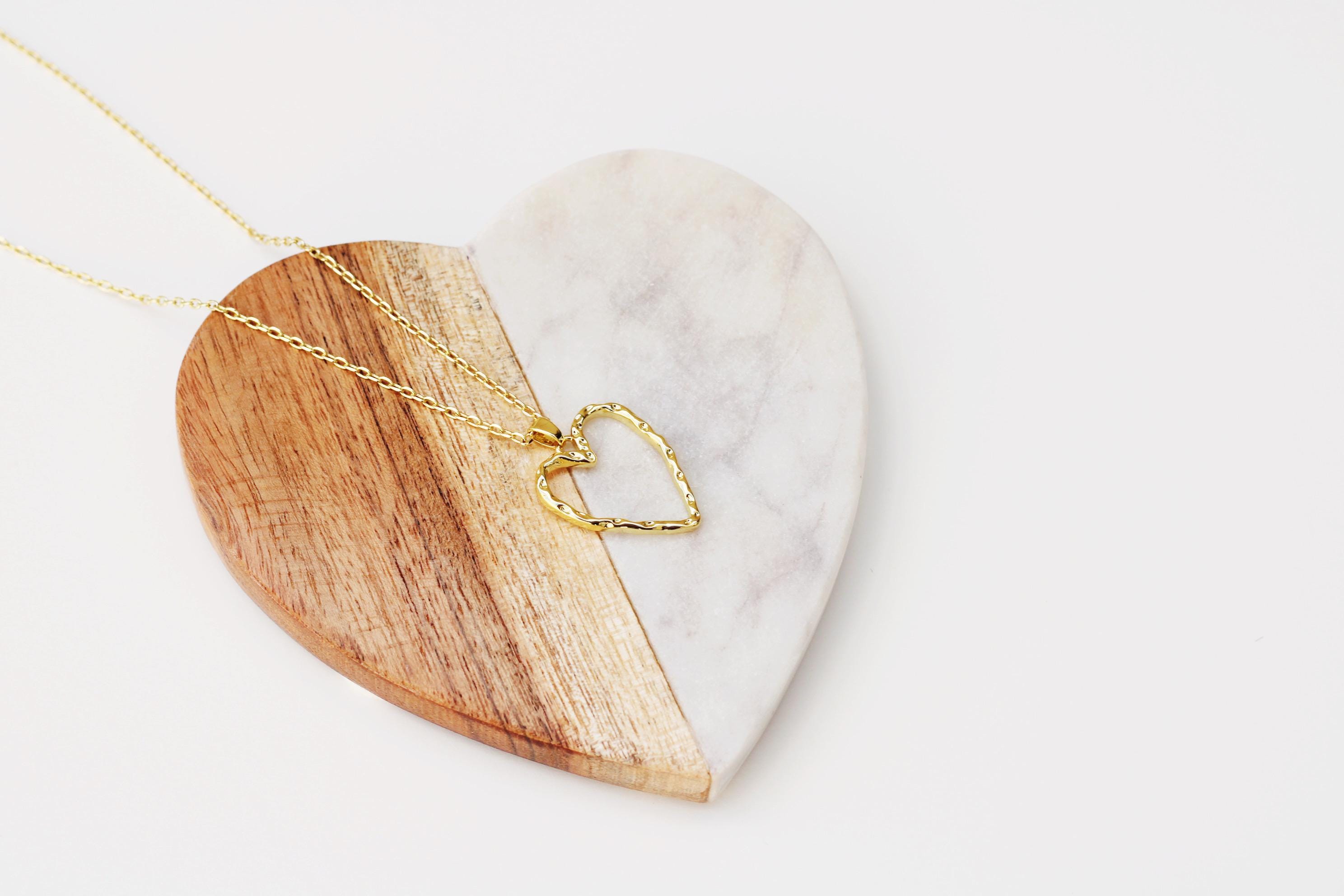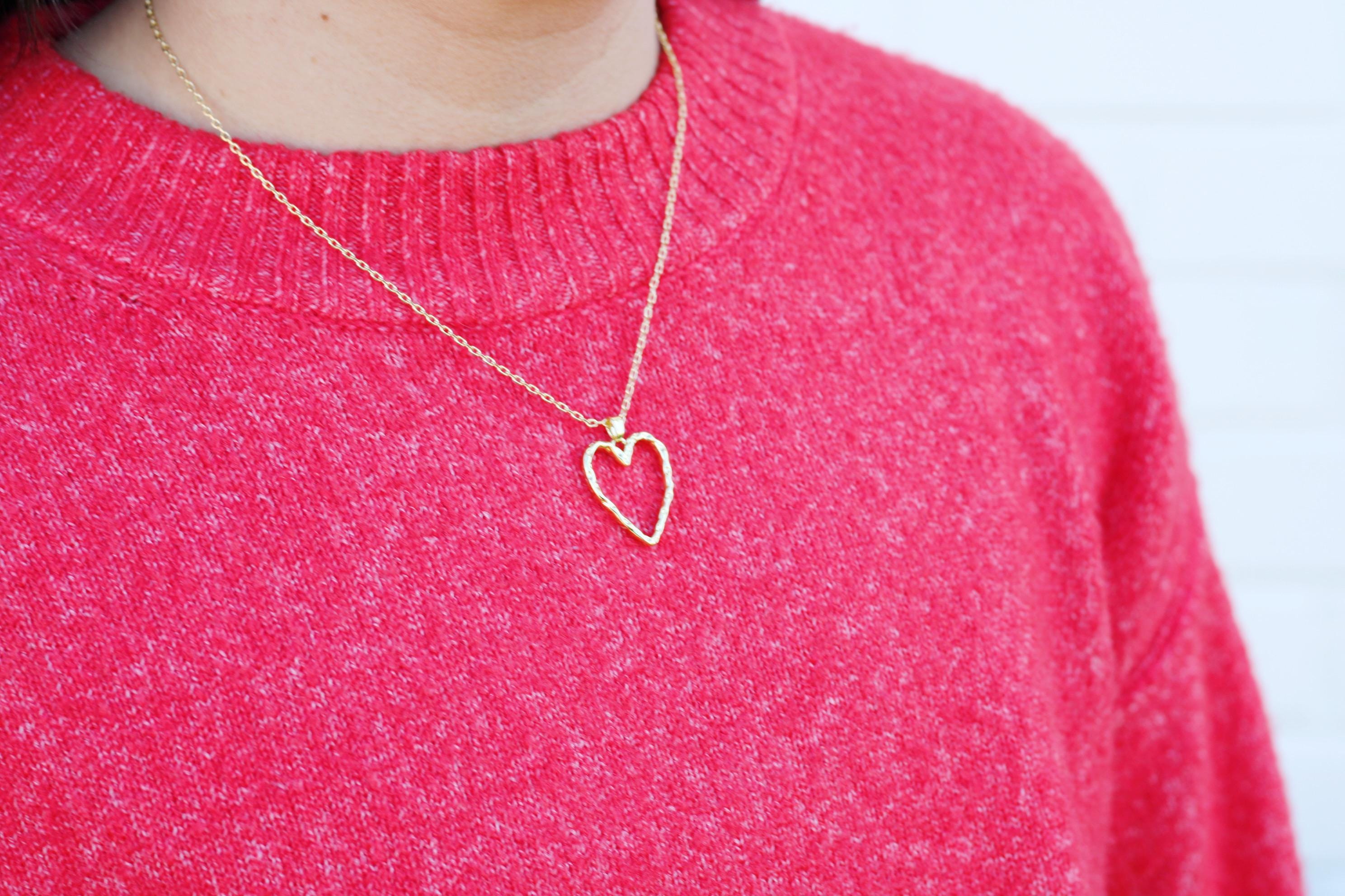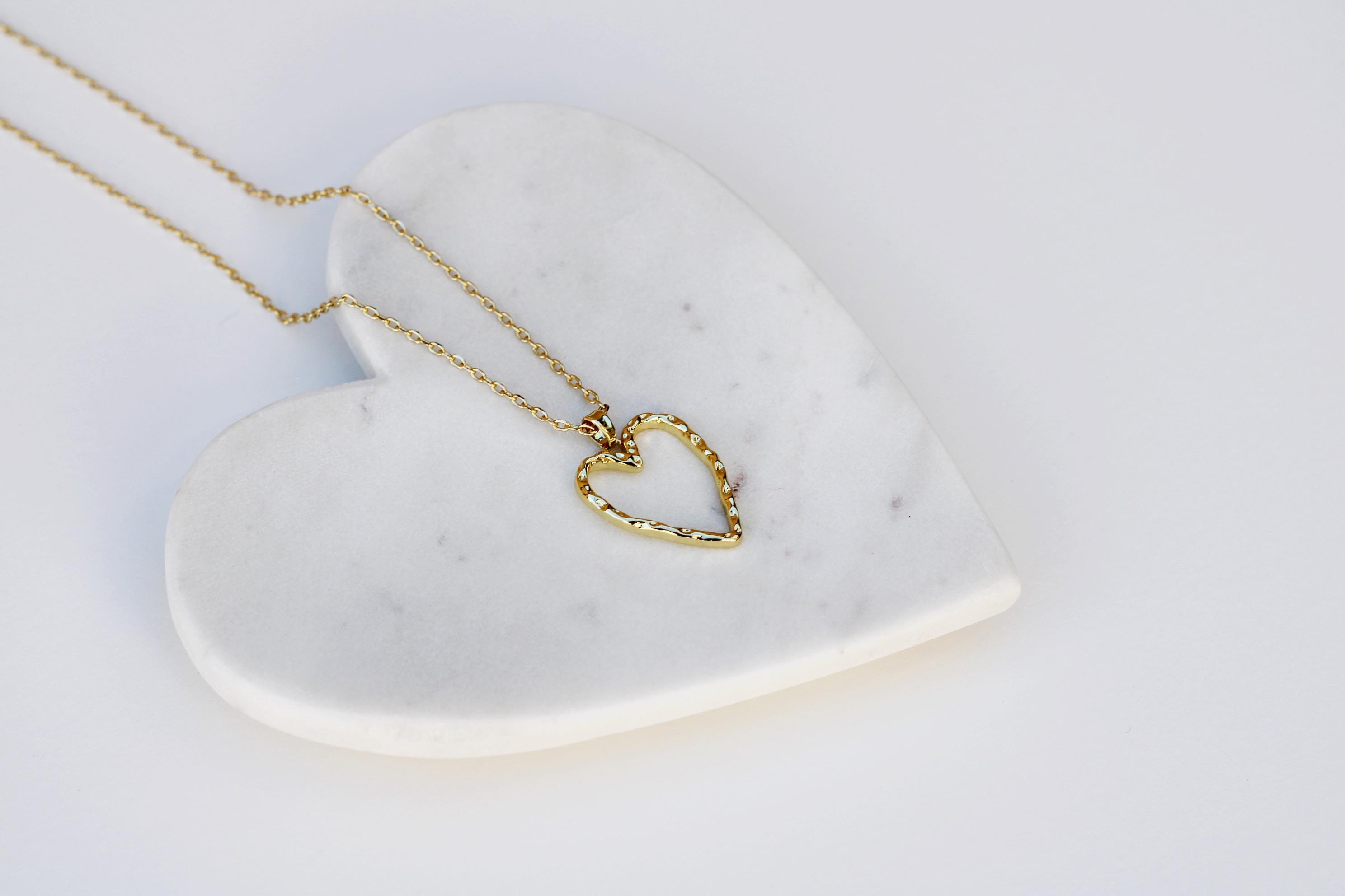 A sparkly 14k gold plated chain necklace chain adorned with a 18k gold filled heart charm.