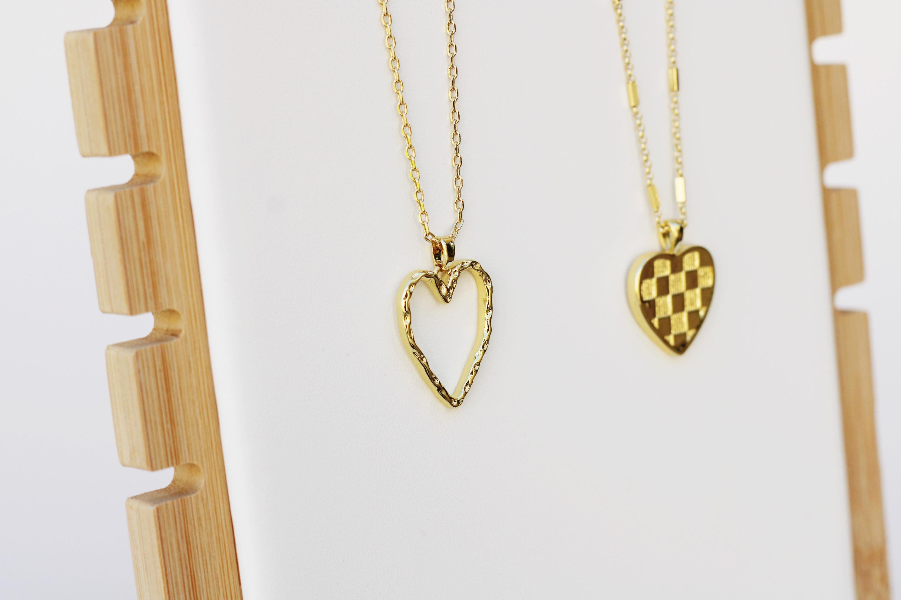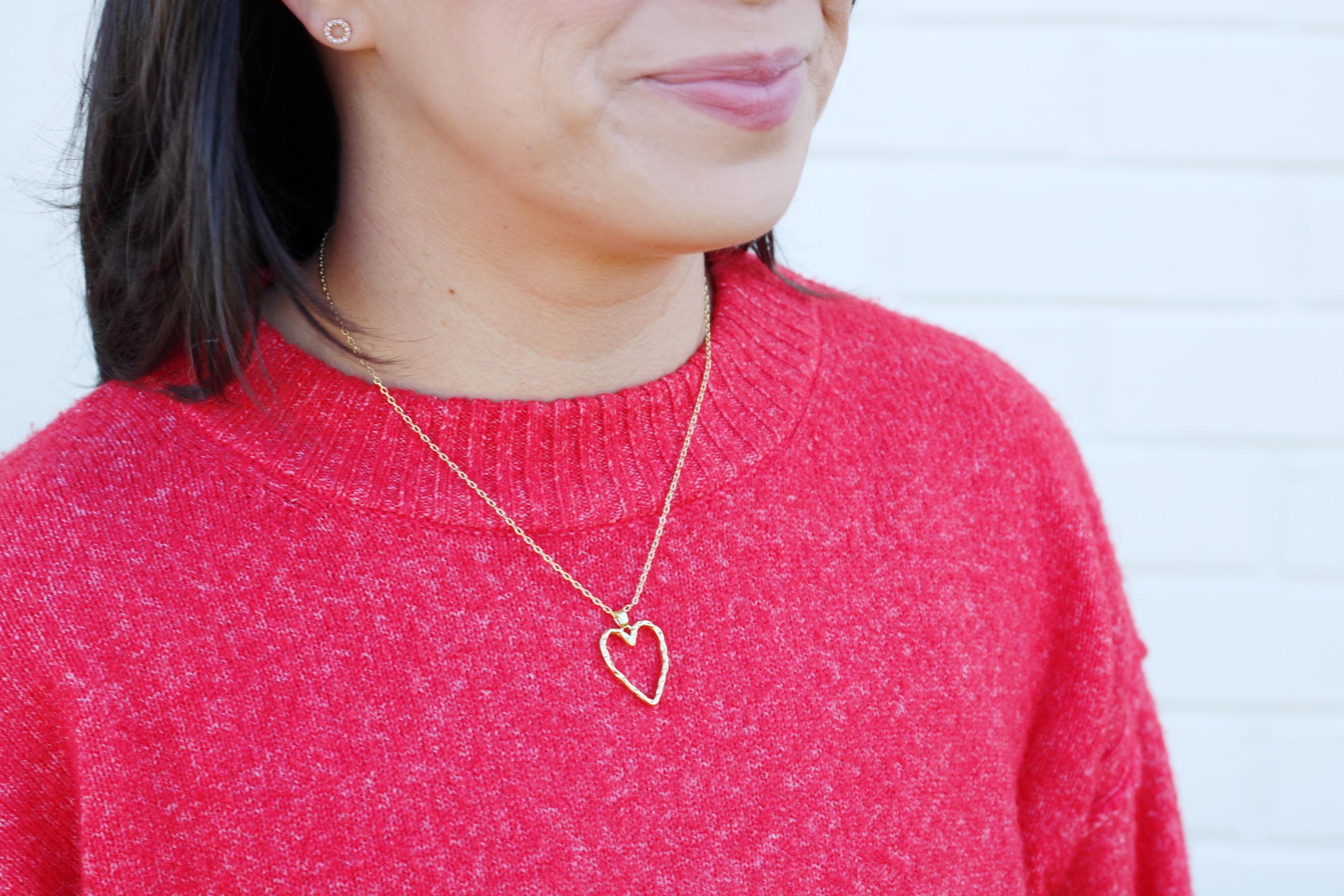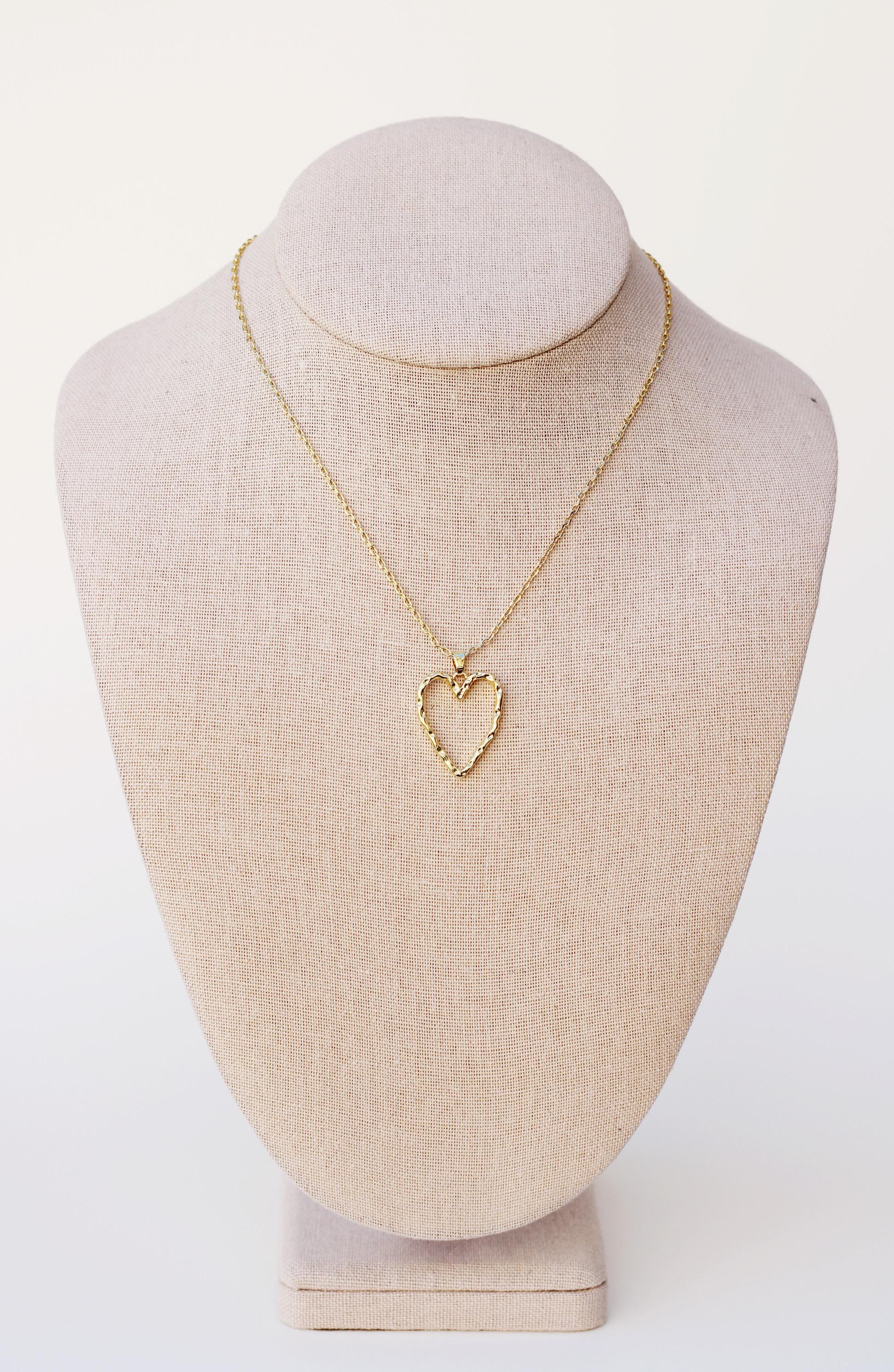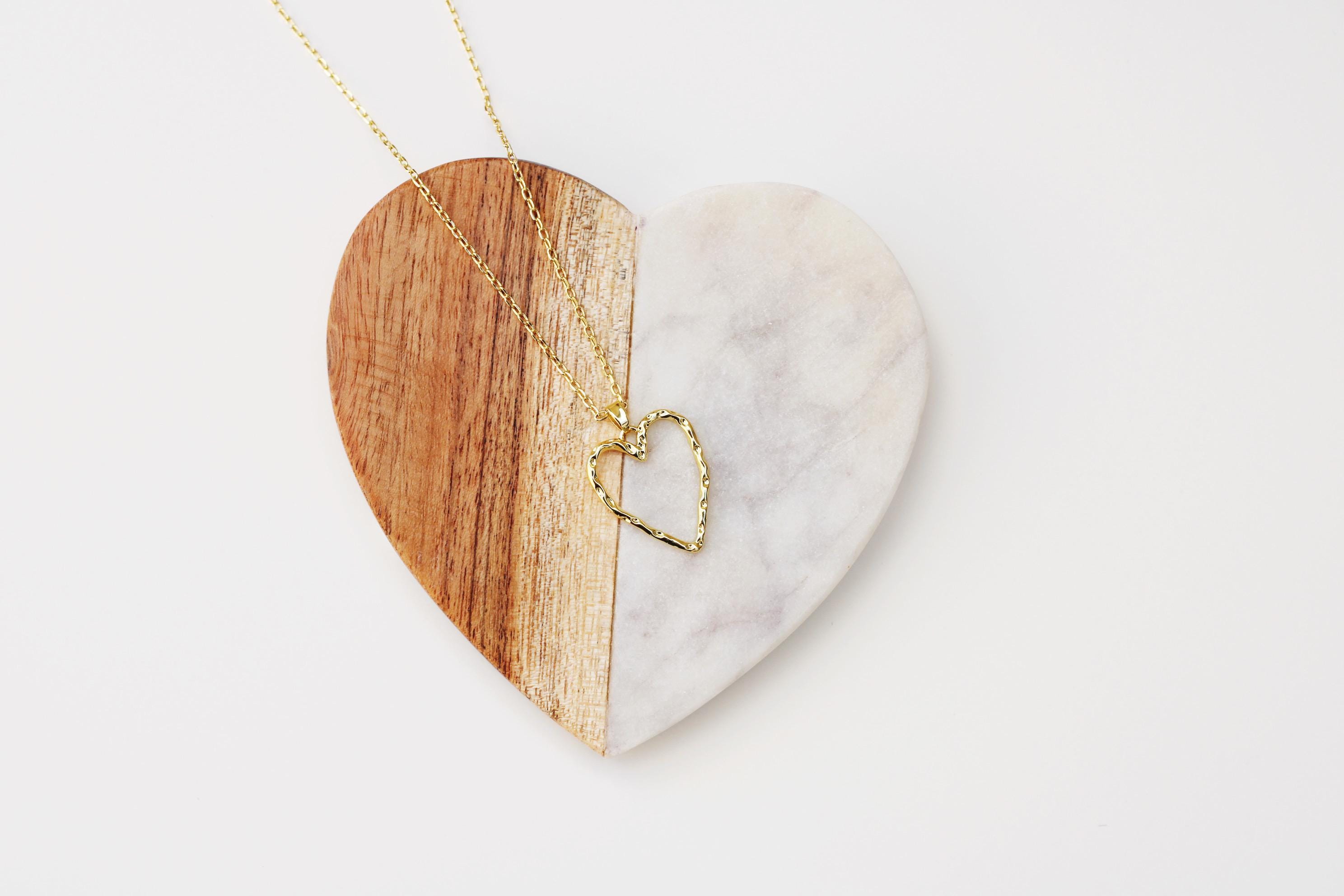 A sparkly 14k gold plated chain necklace chain adorned with a 18k gold filled heart charm.