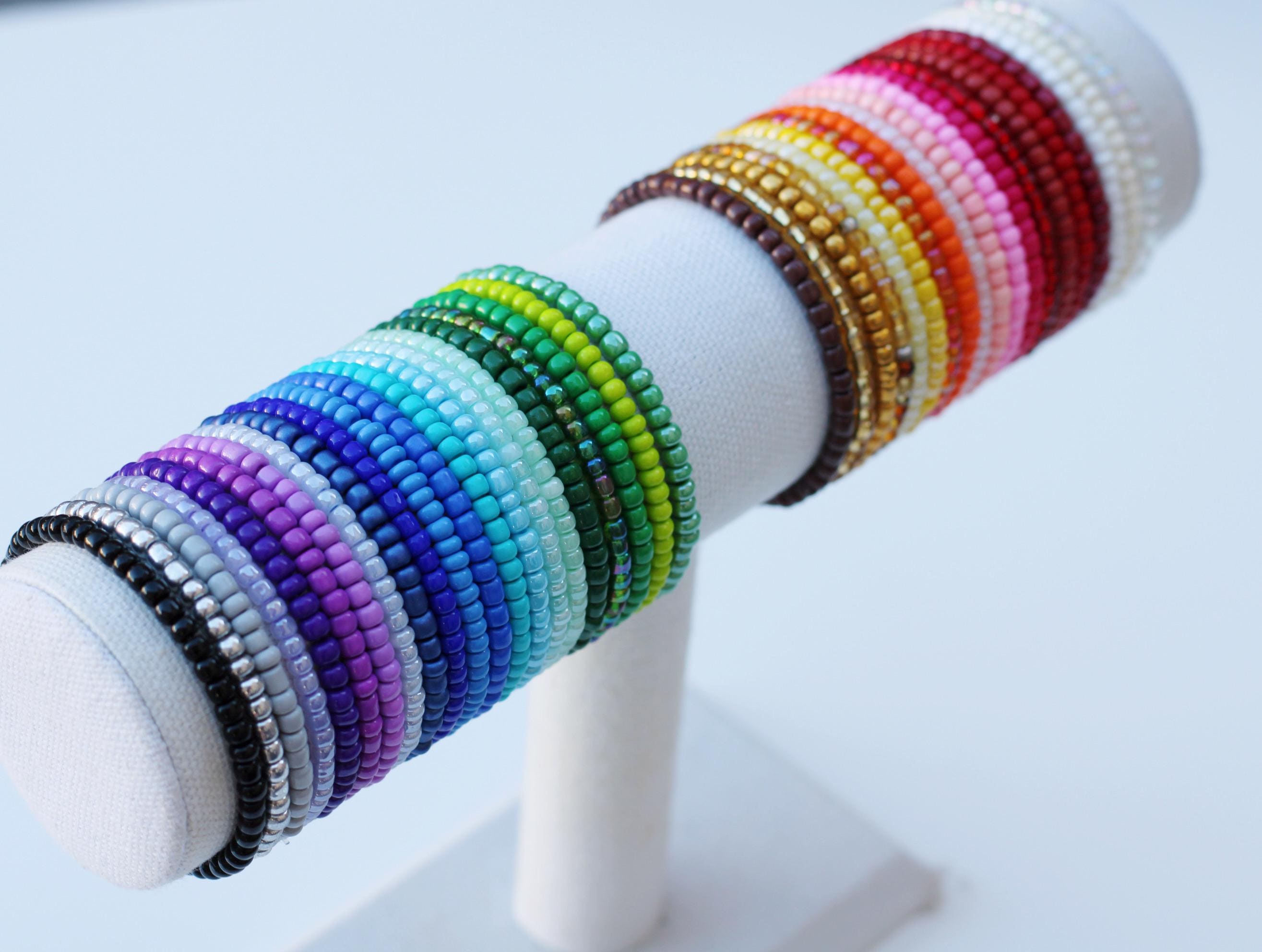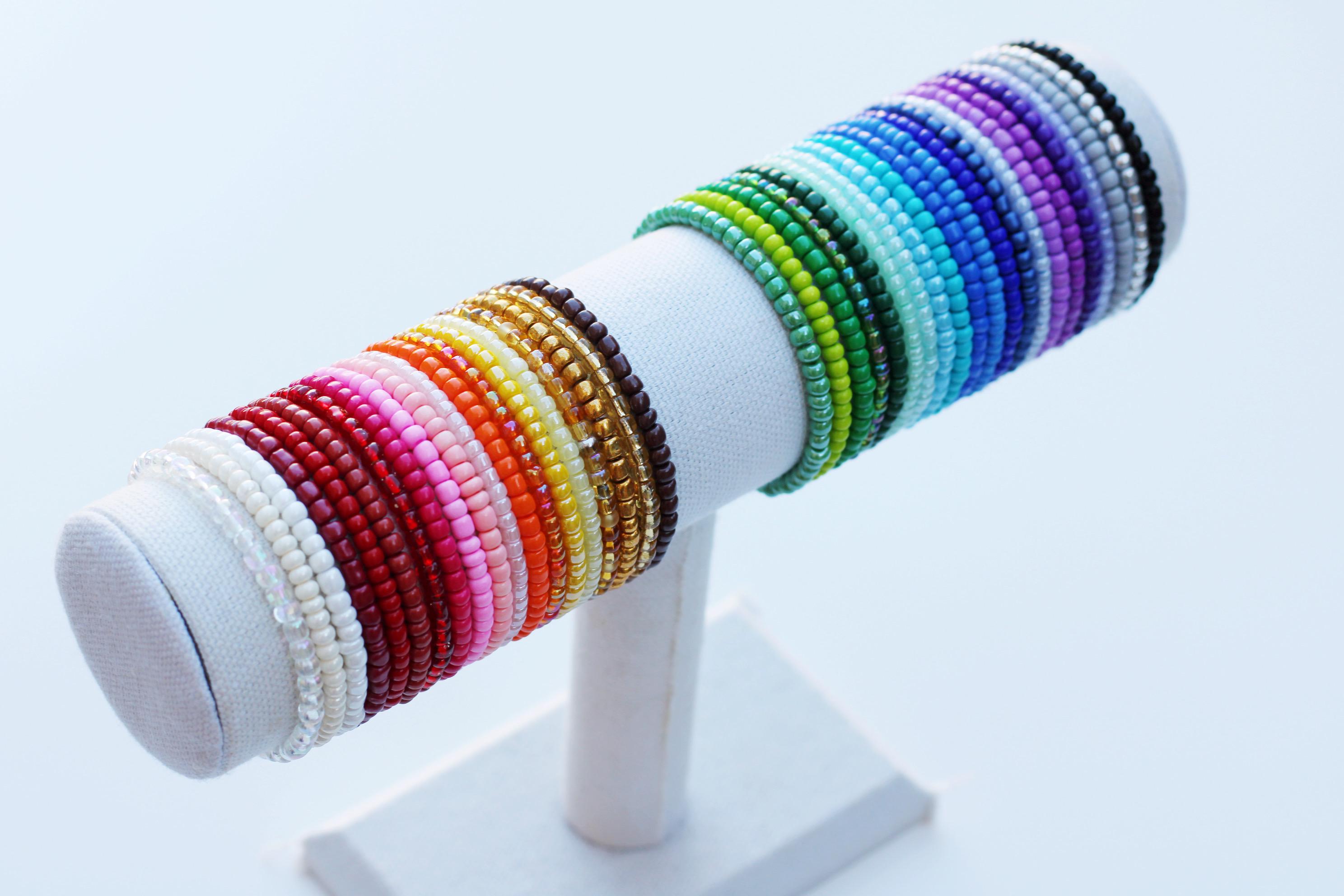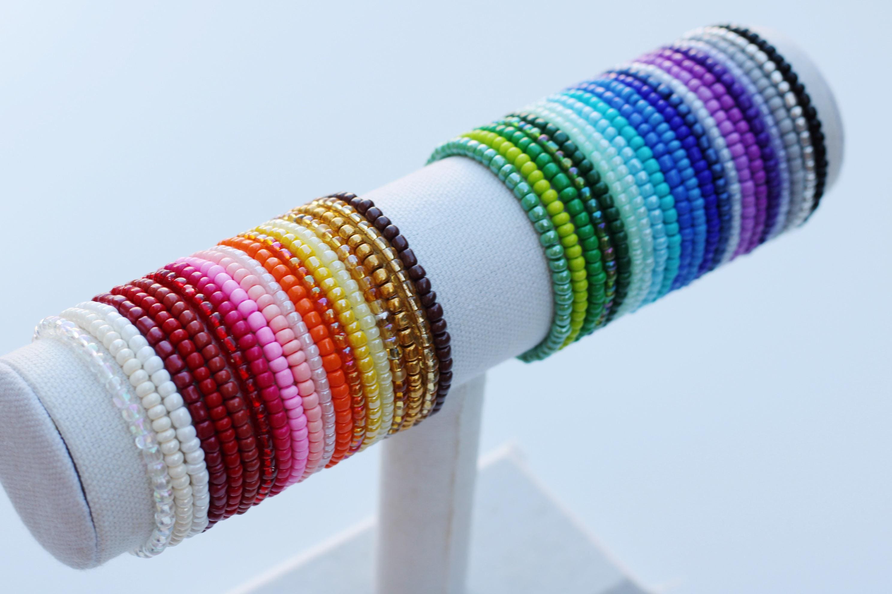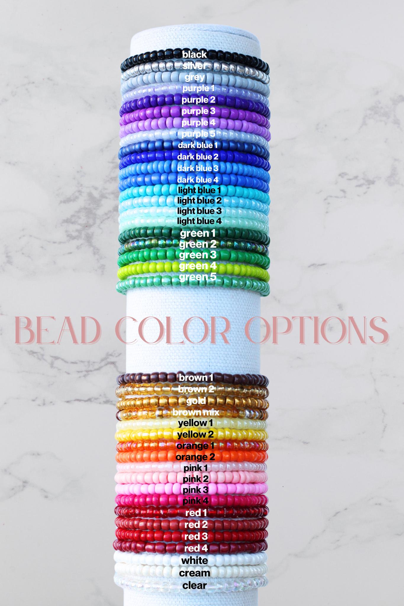 This listing is for bracelets with 4mm seed beads on a durable stretch cord. Stack and save $$$ depending on how many you buy!