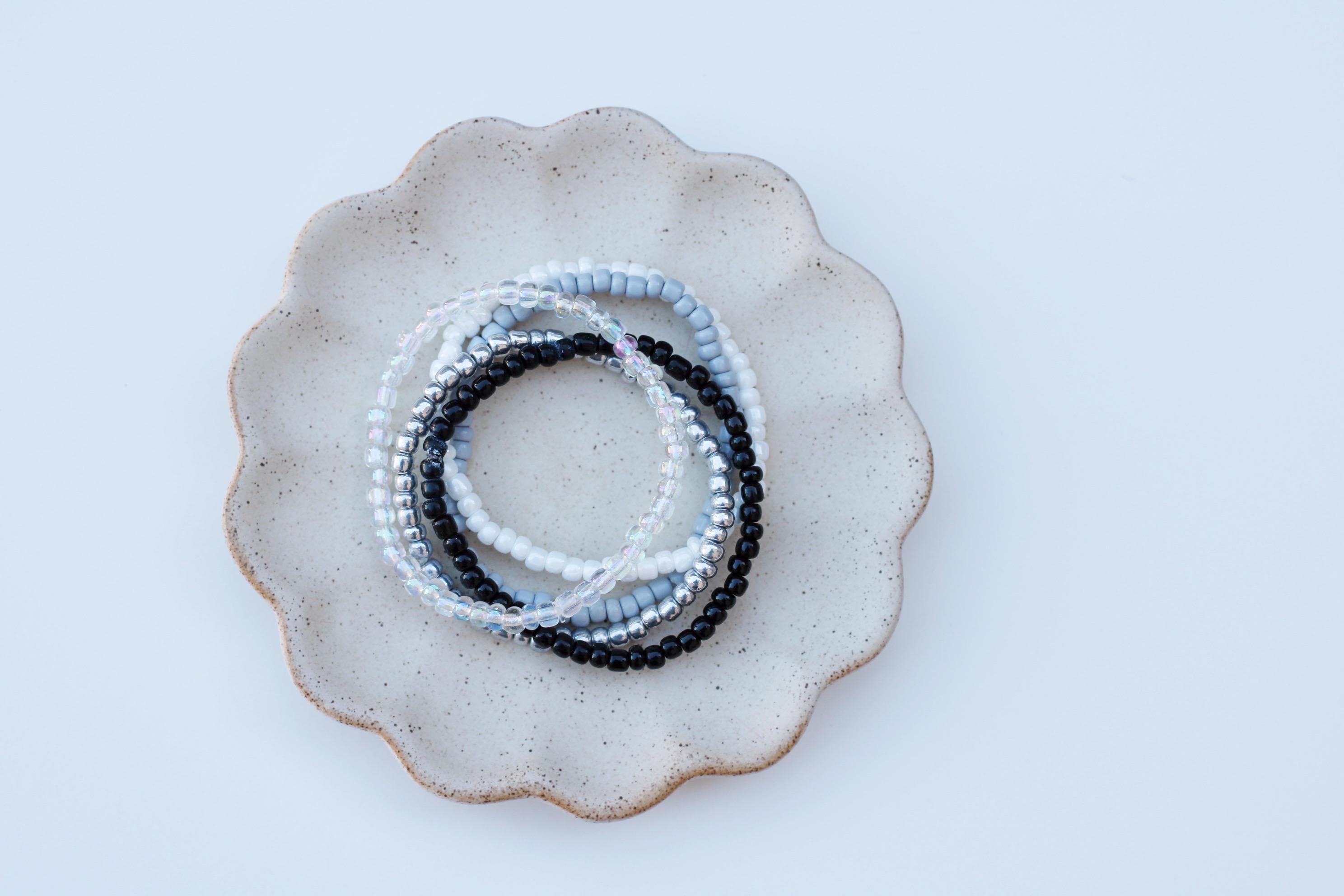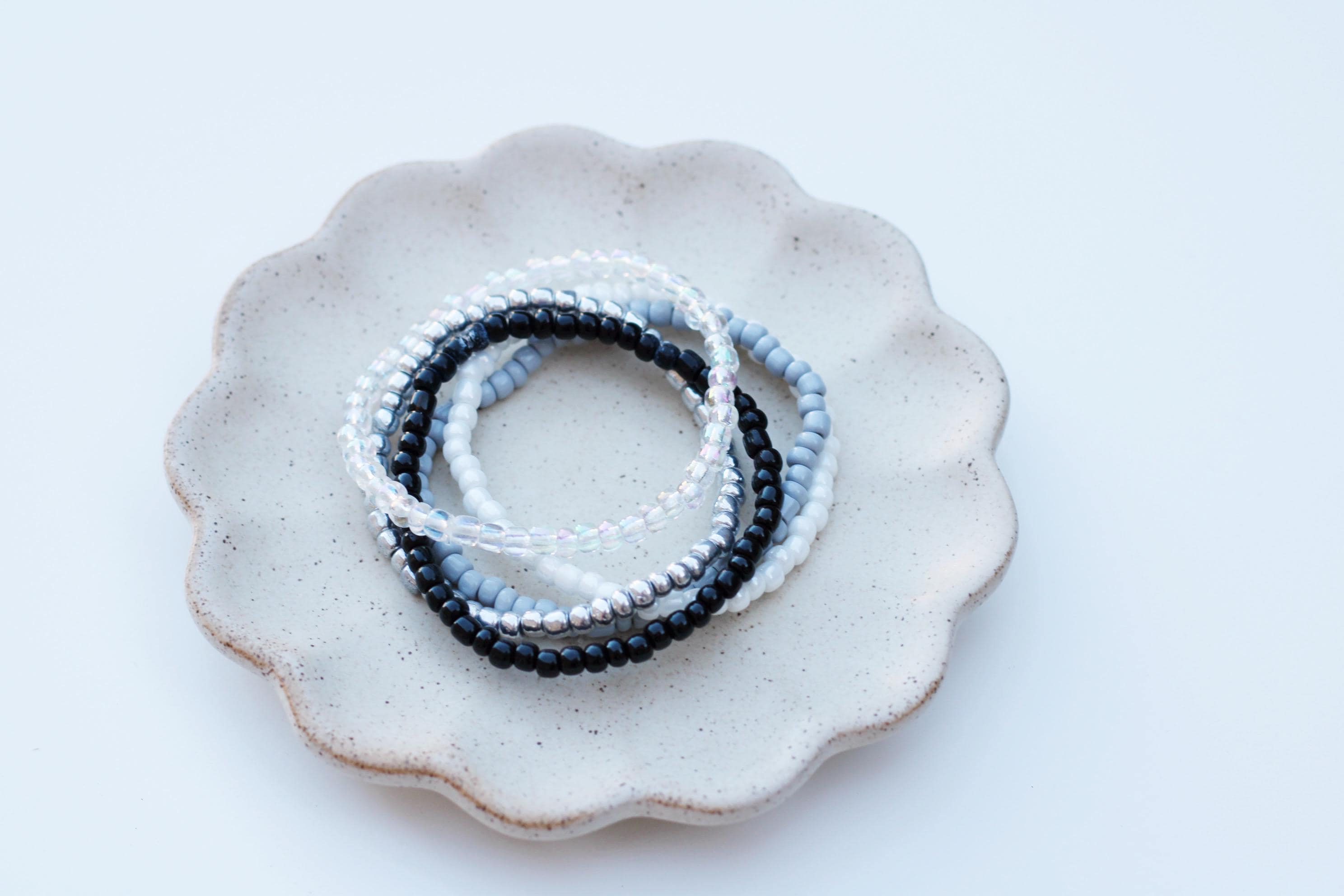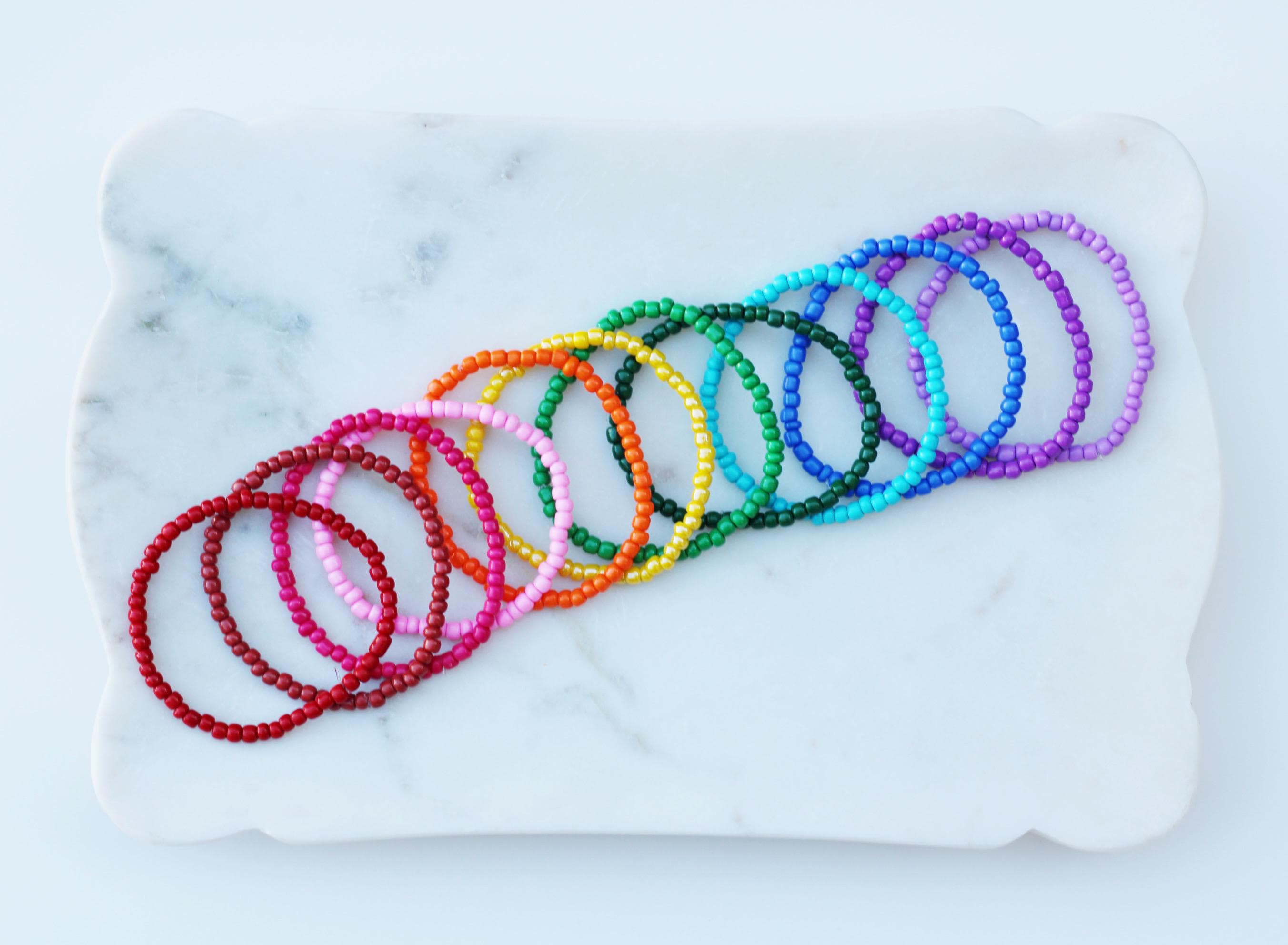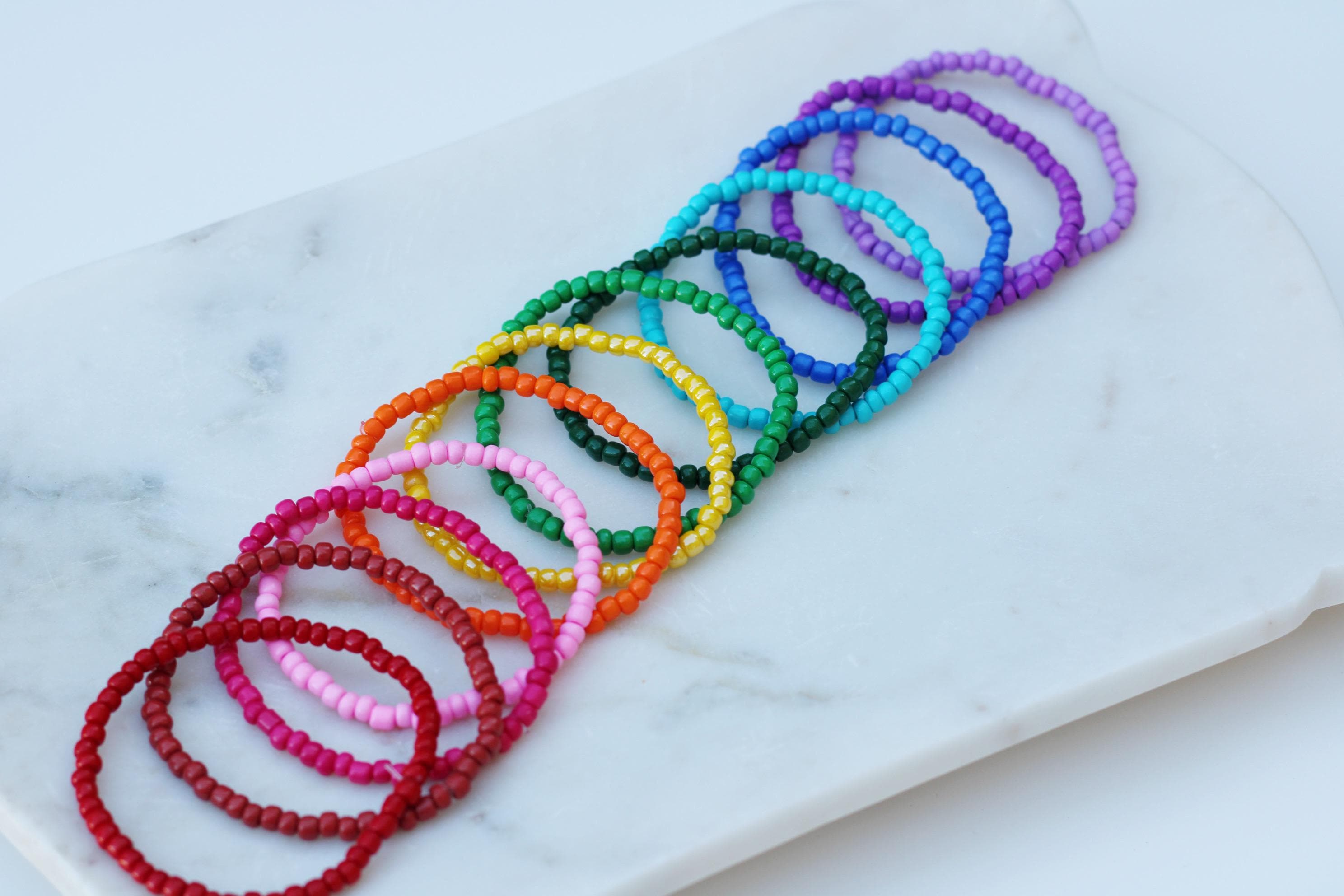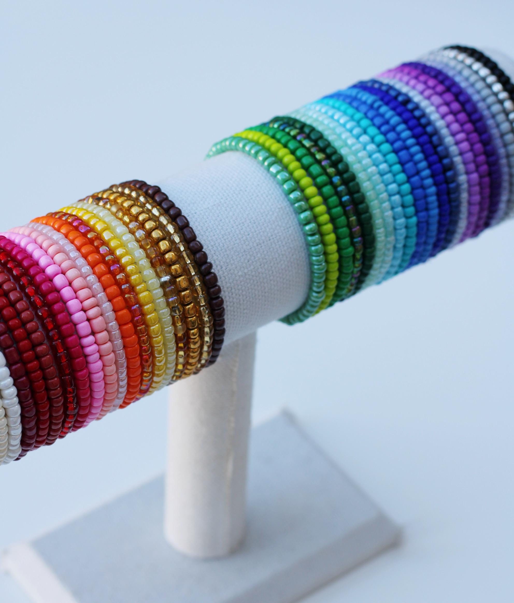 This listing is for bracelets with 4mm seed beads on a durable stretch cord. Stack and save $$$ depending on how many you buy!