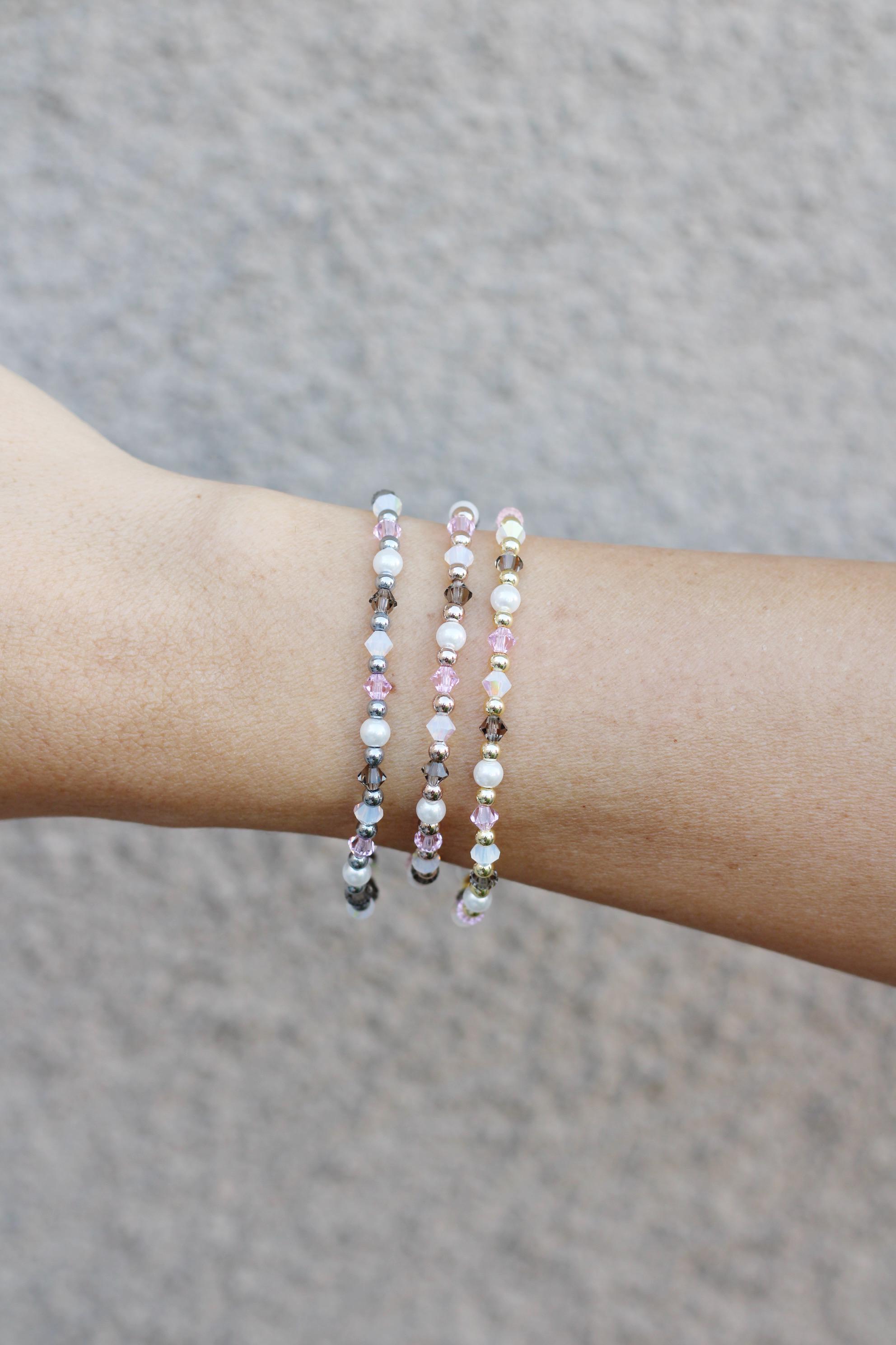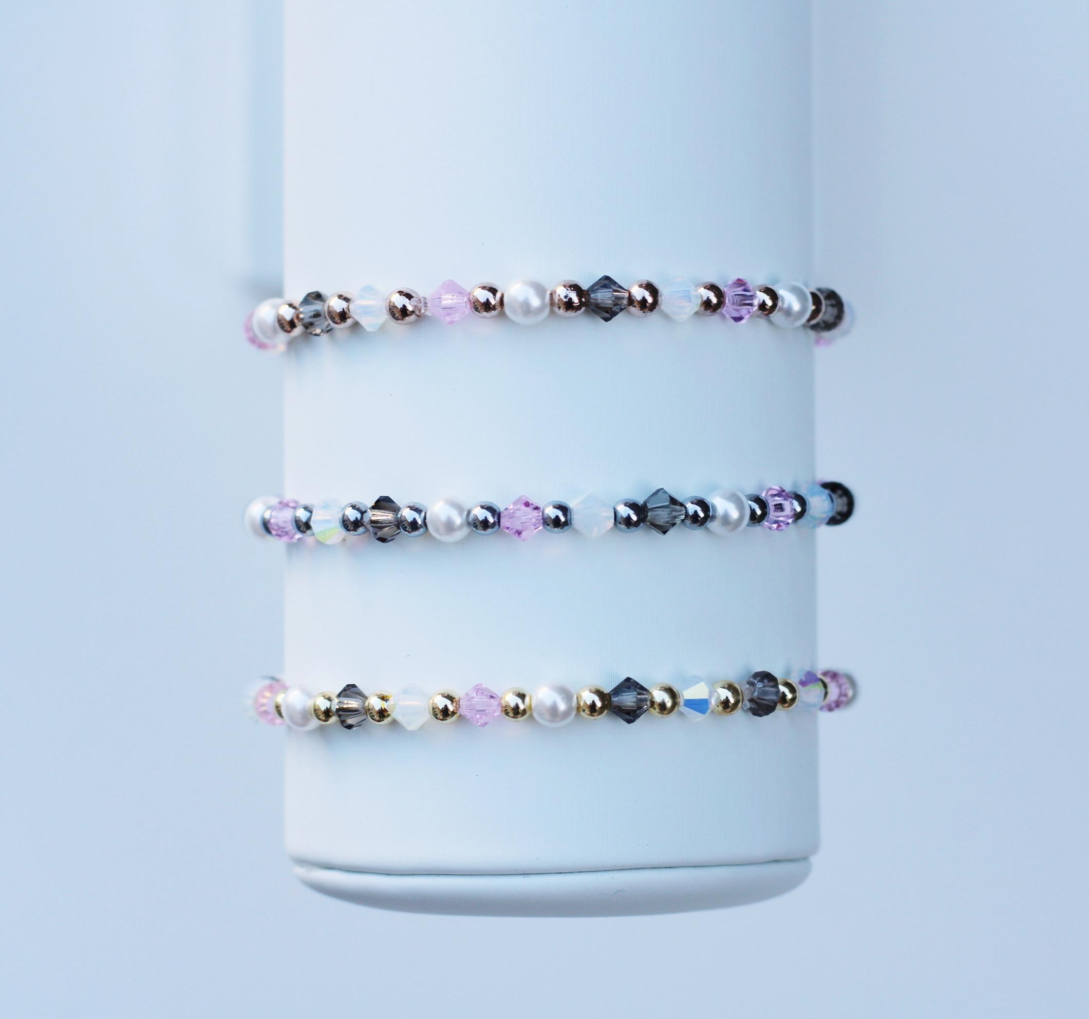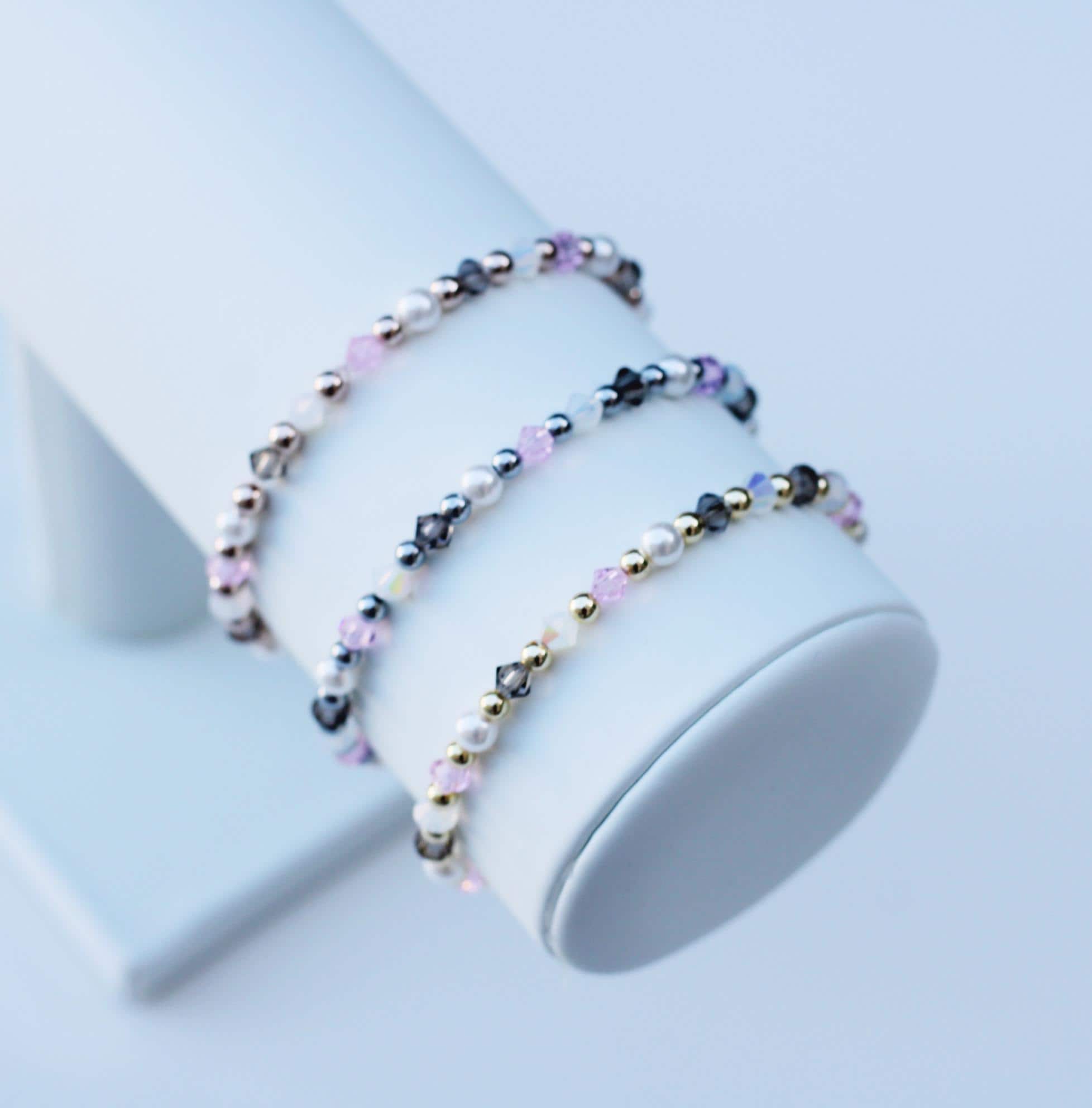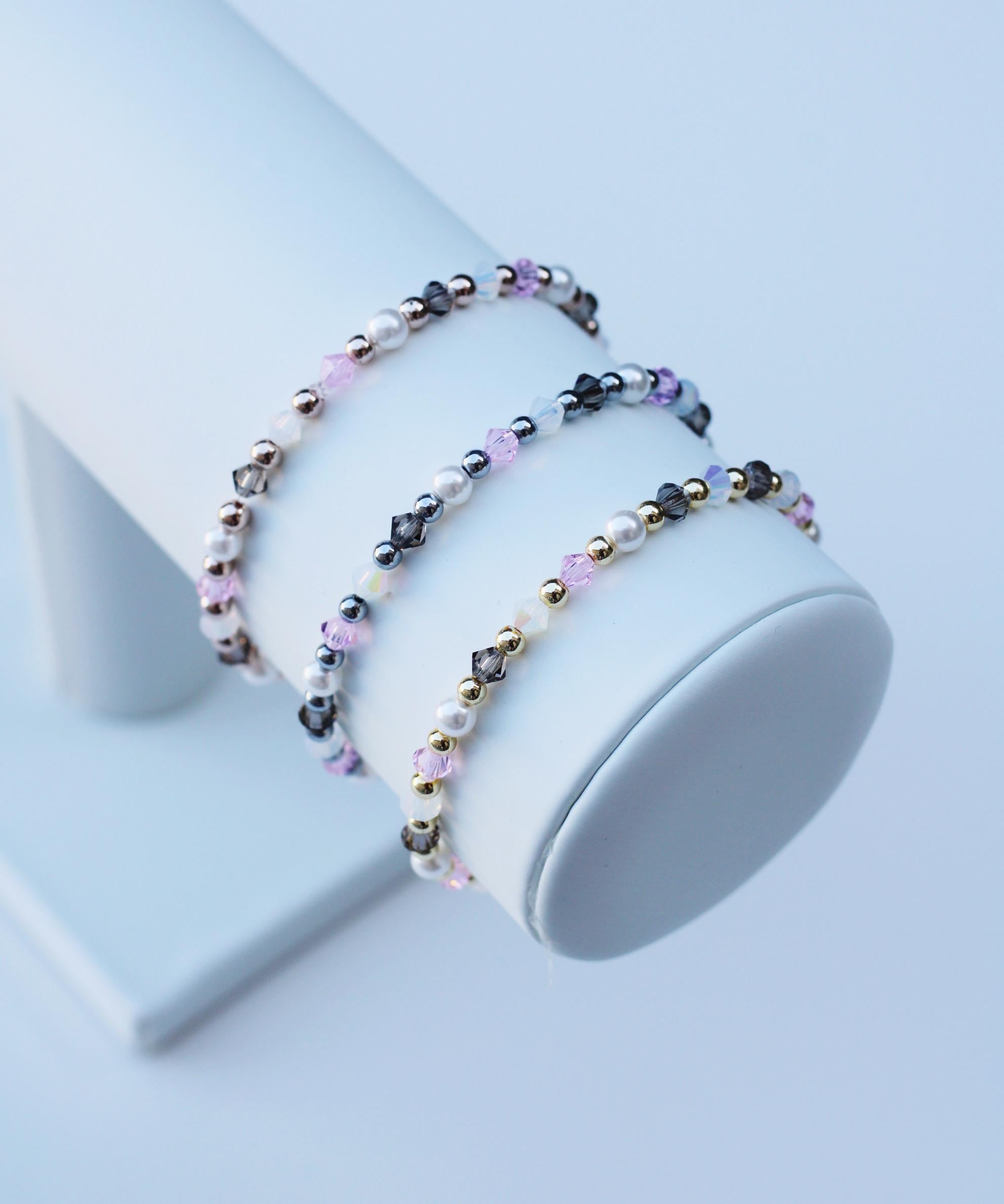 Uniquely crafted with 3mm gold, silver or rose gold beads and accented with genuine Czech crystals and pearls.
