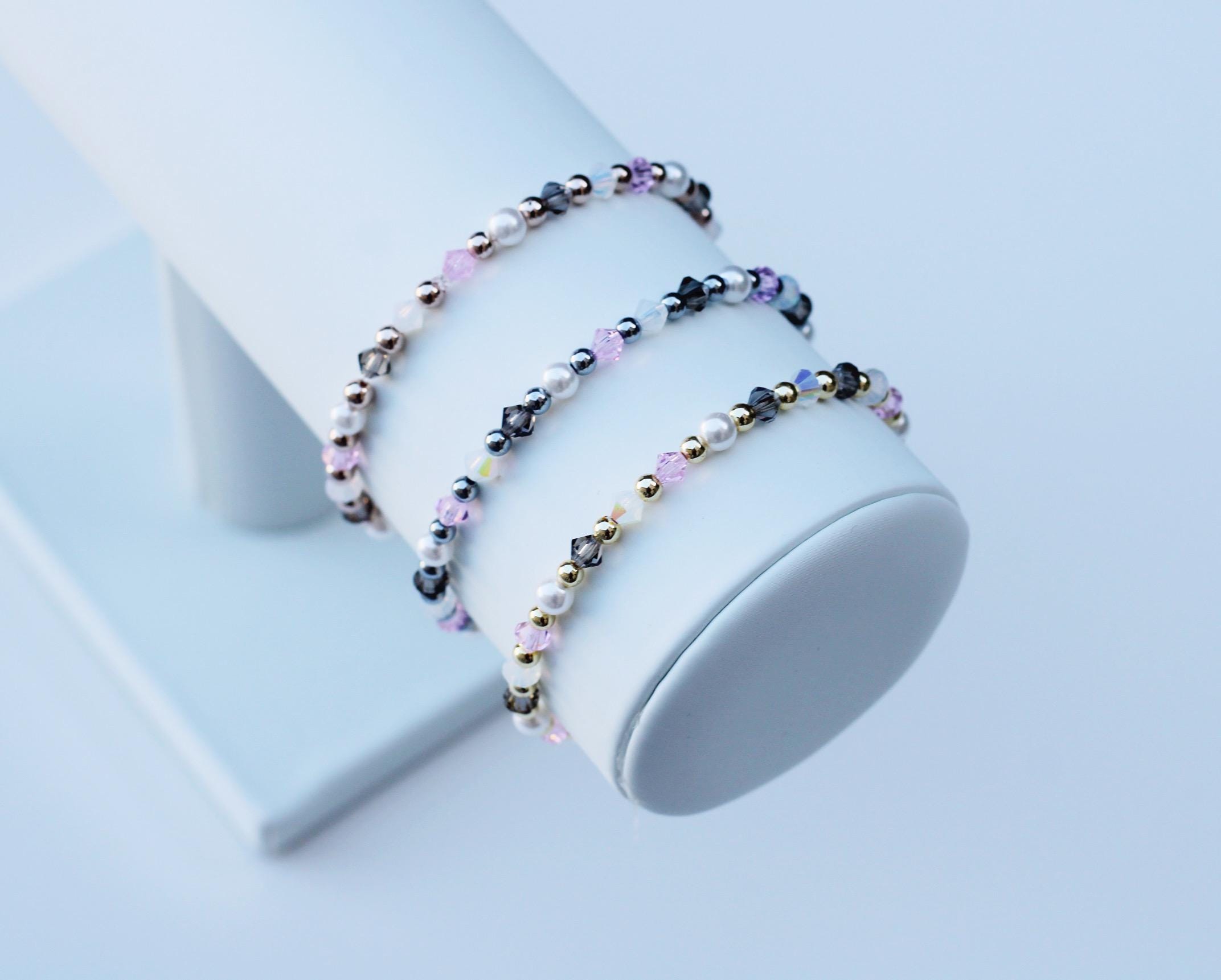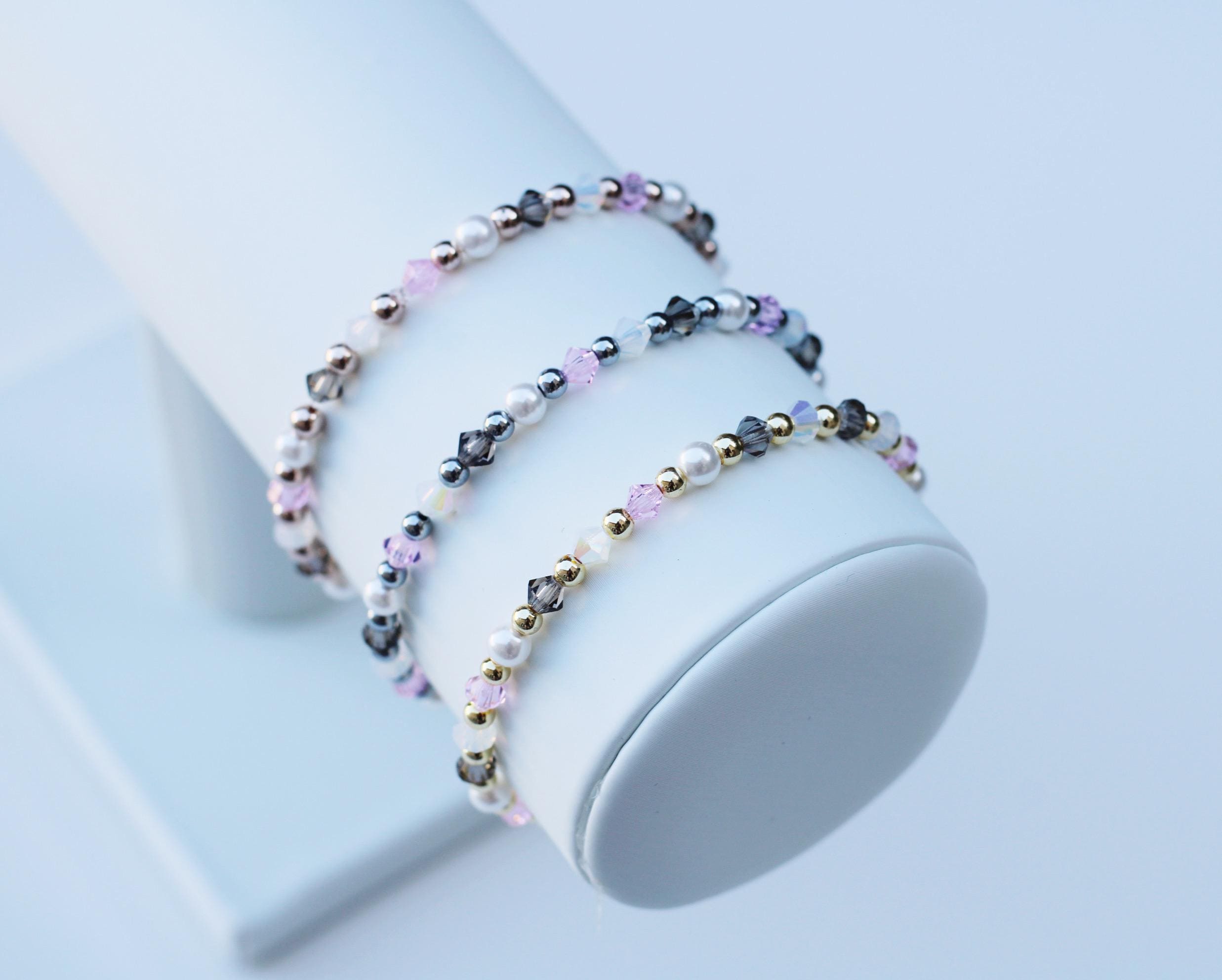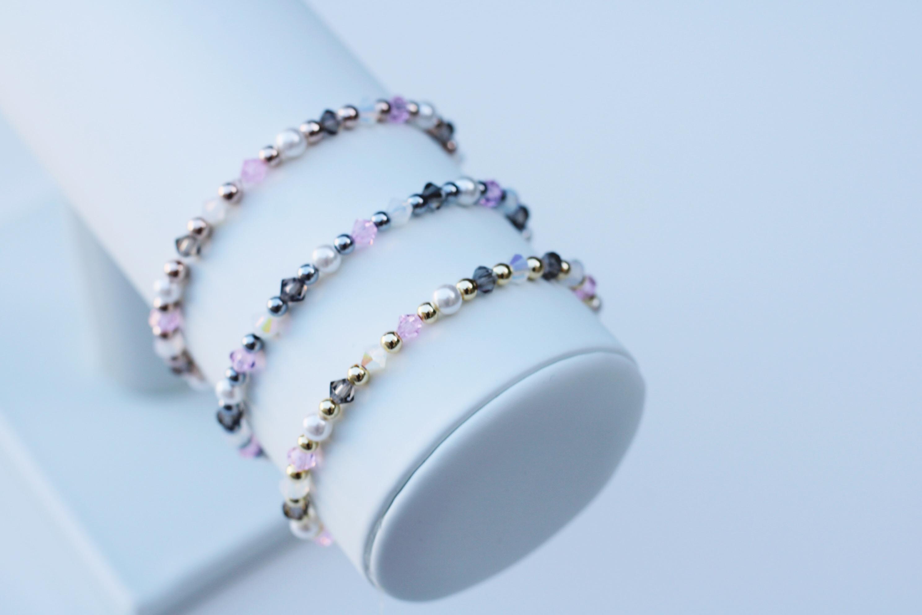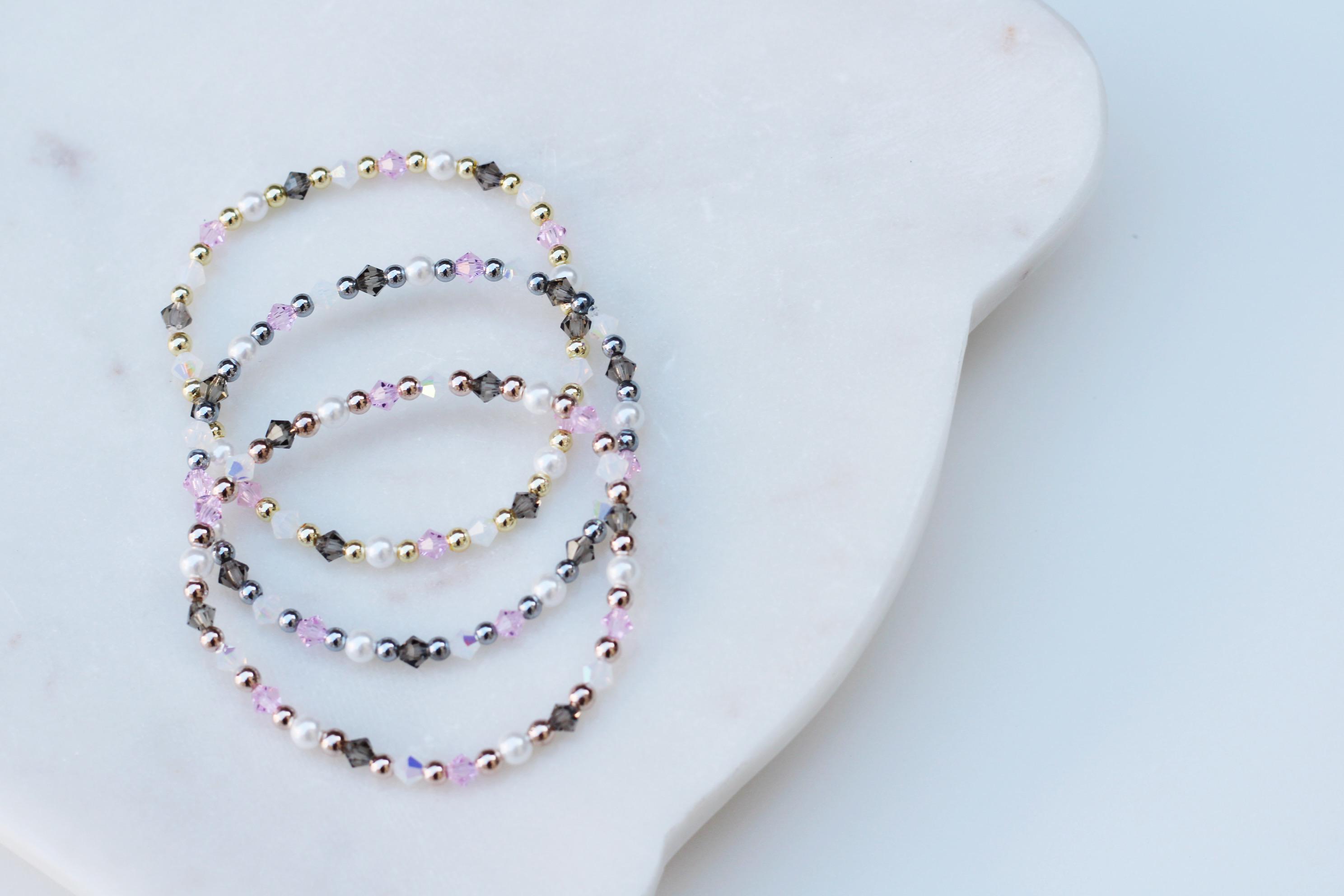 Uniquely crafted with 3mm gold, silver or rose gold beads and accented with genuine Czech crystals and pearls.