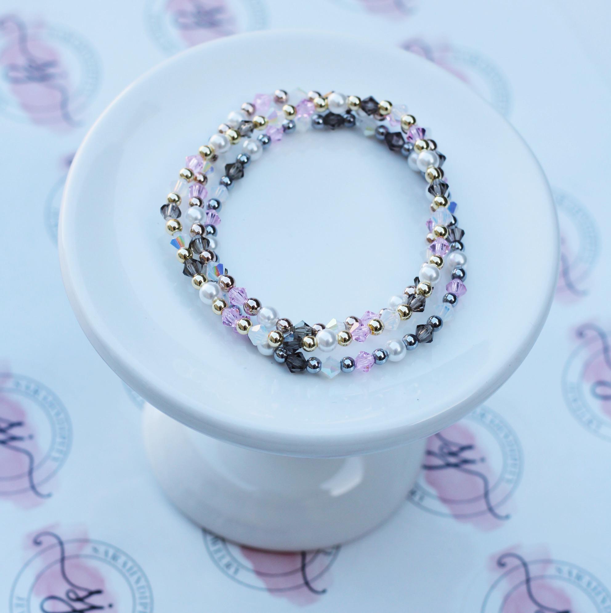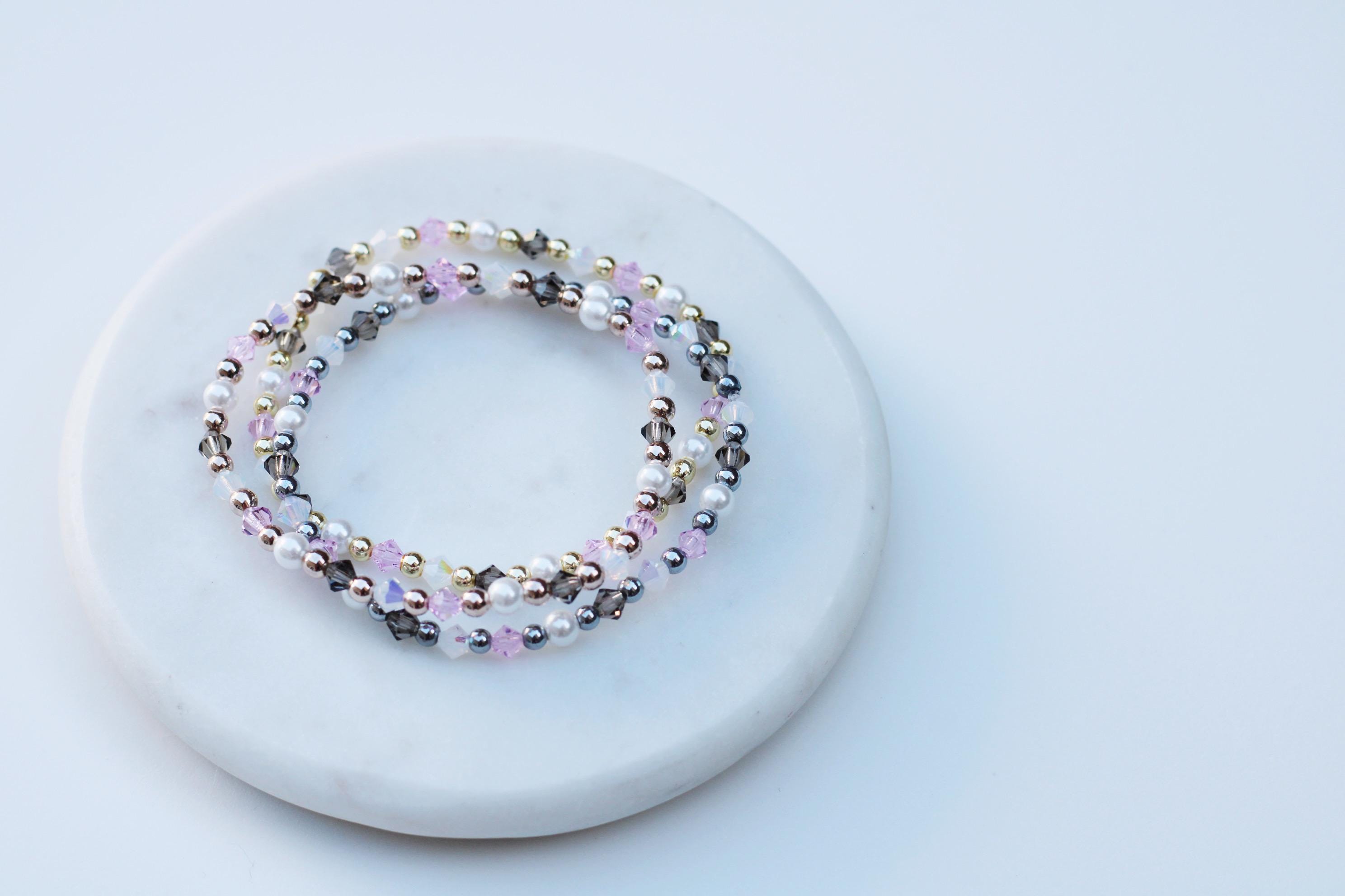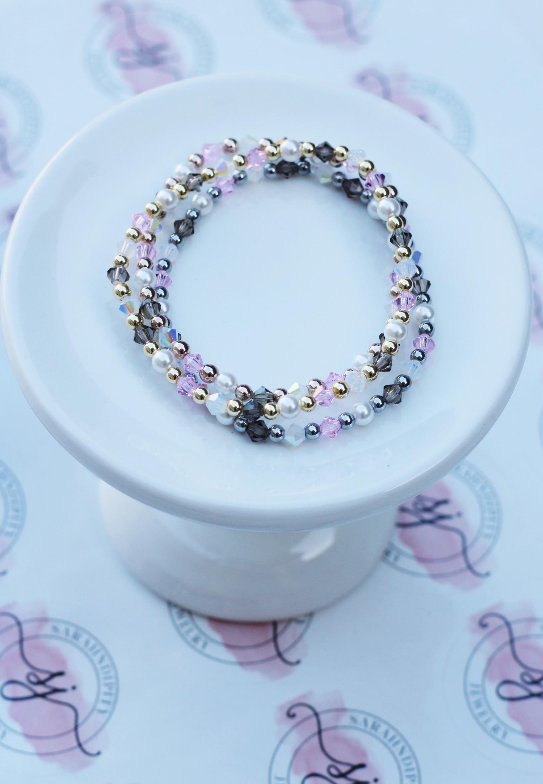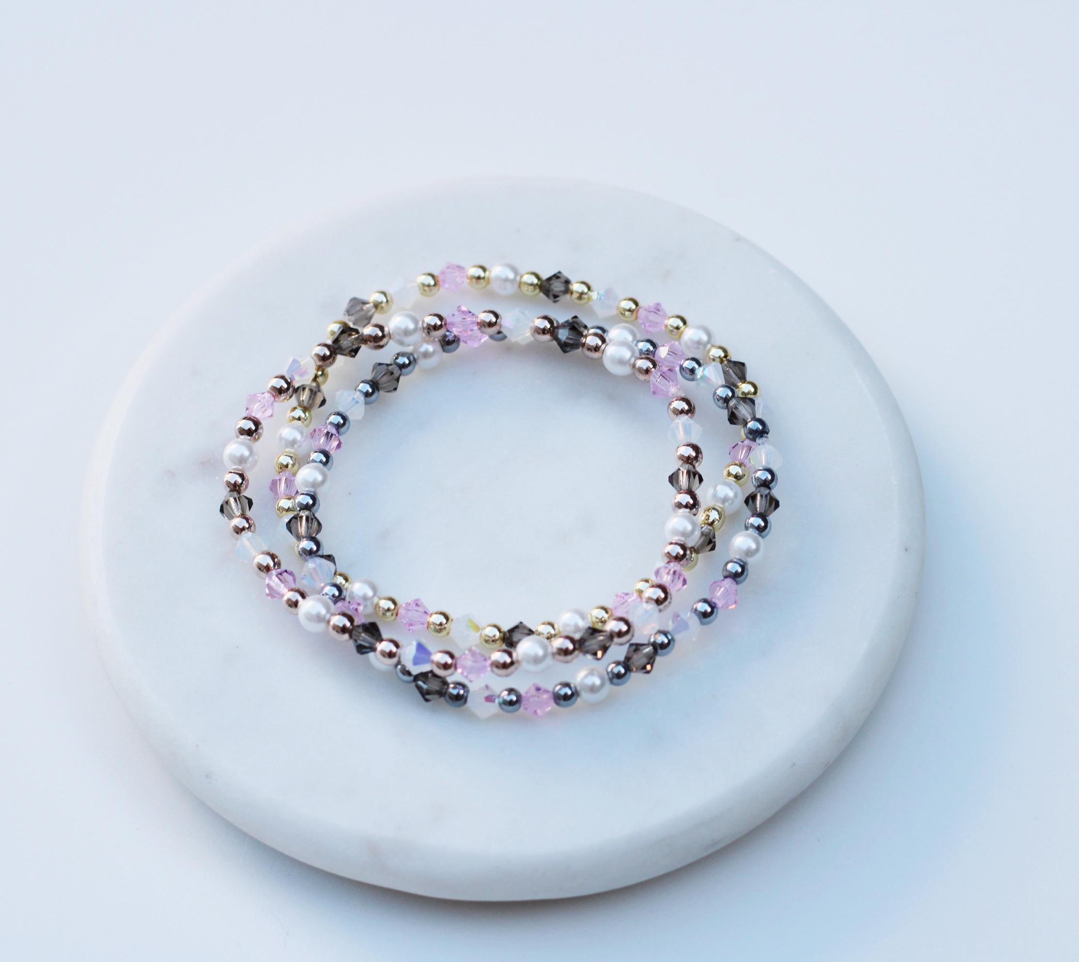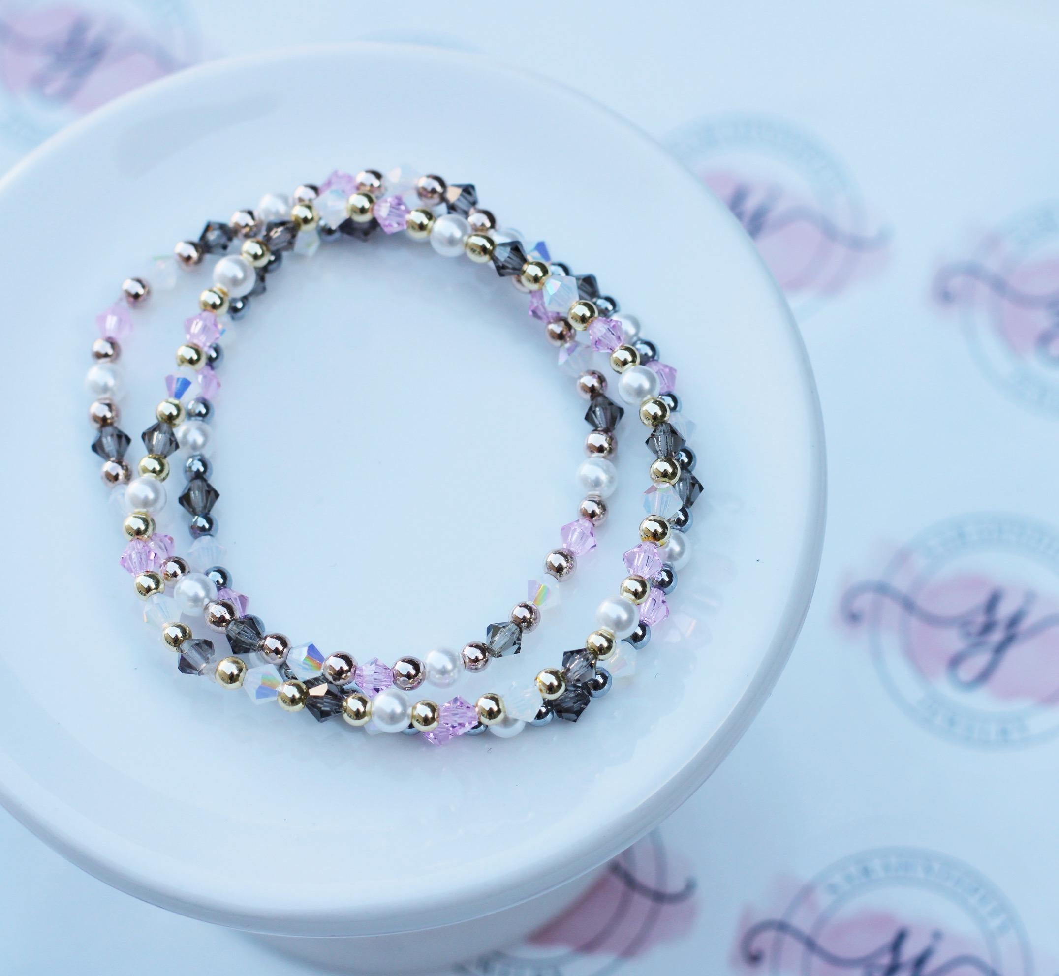 Uniquely crafted with 3mm gold, silver or rose gold beads and accented with genuine Czech crystals and pearls.