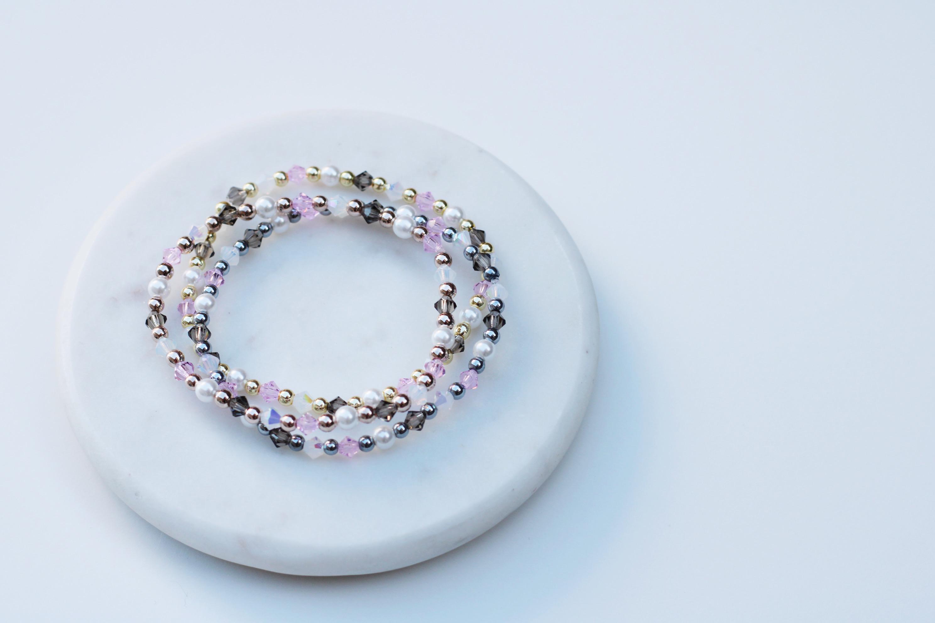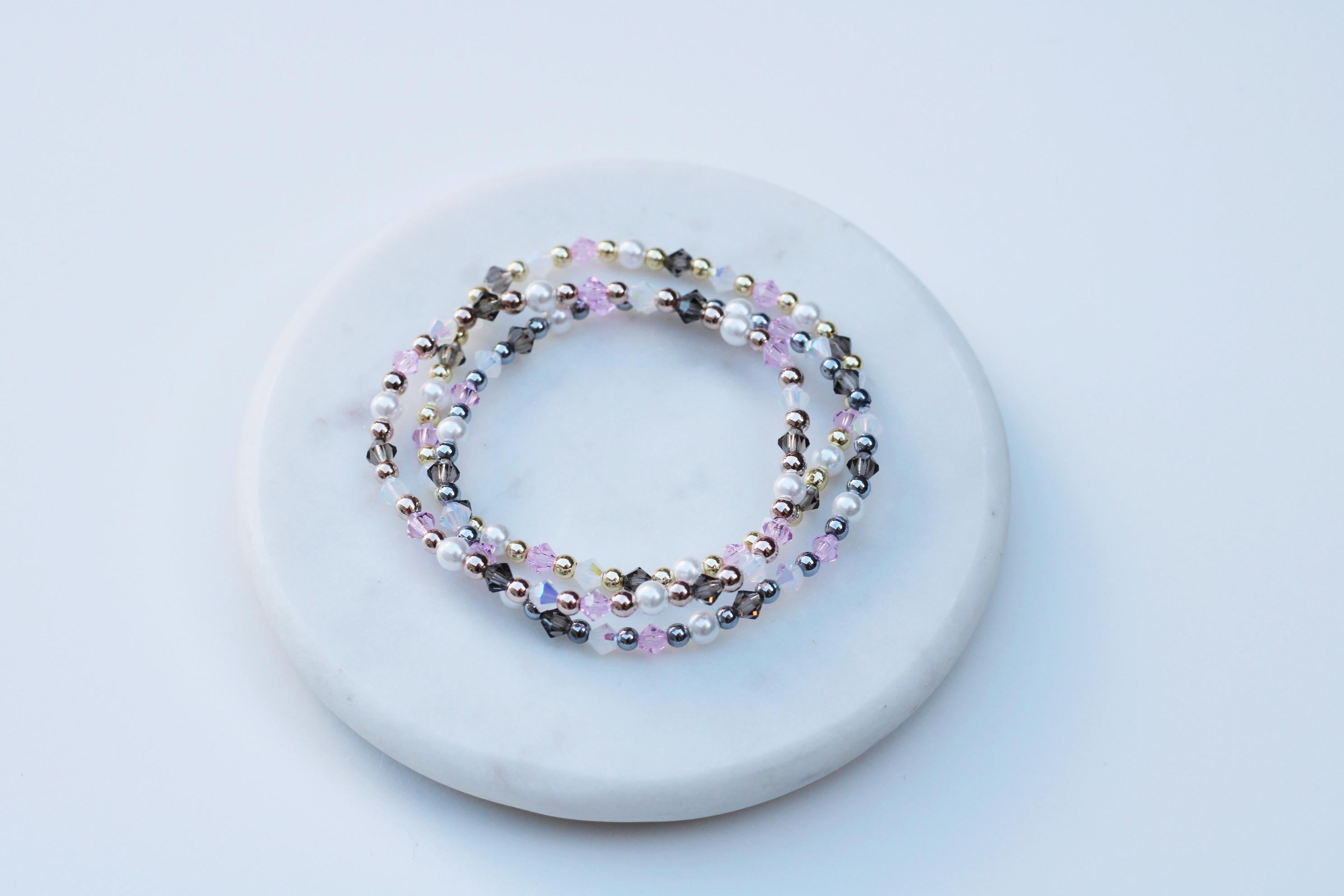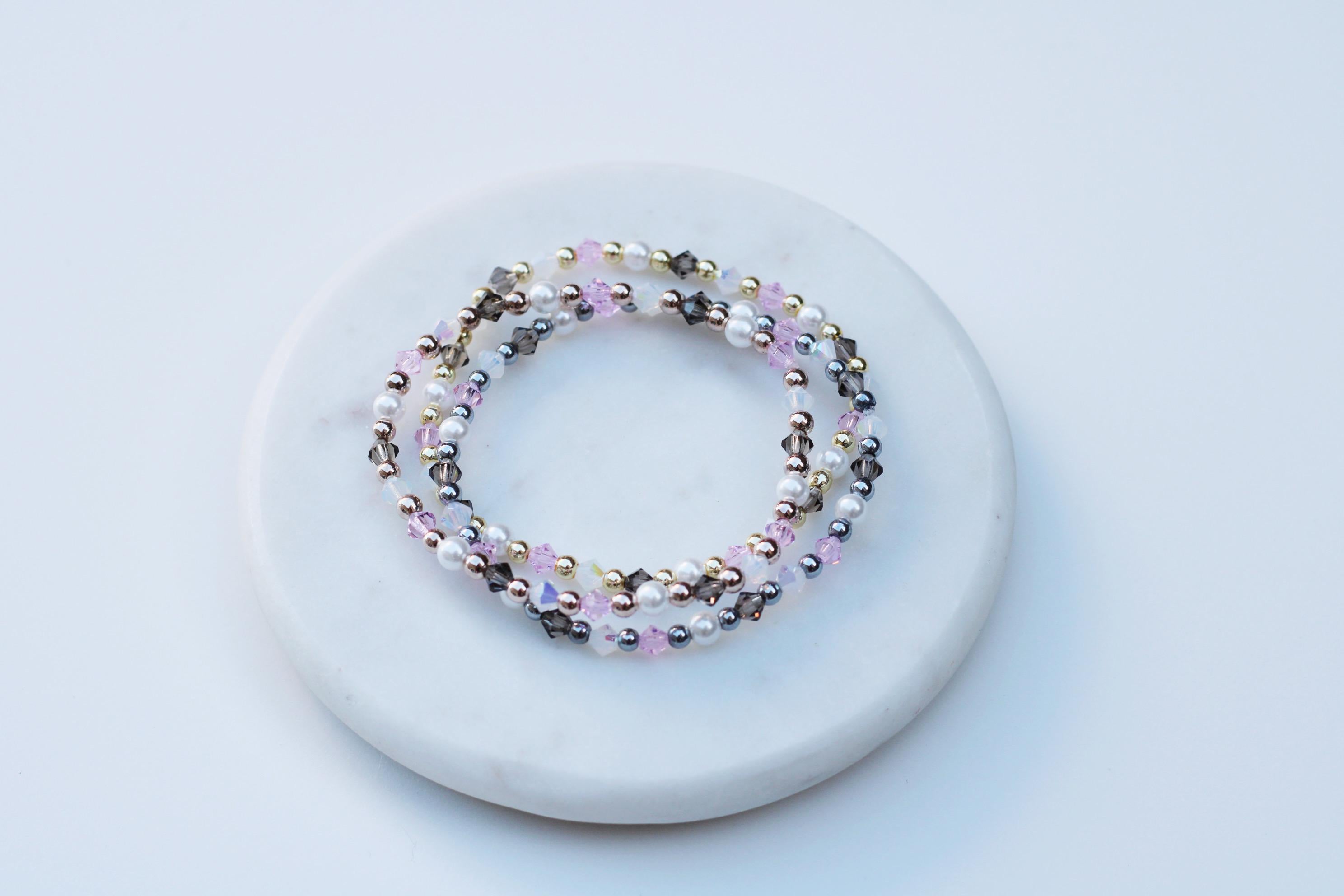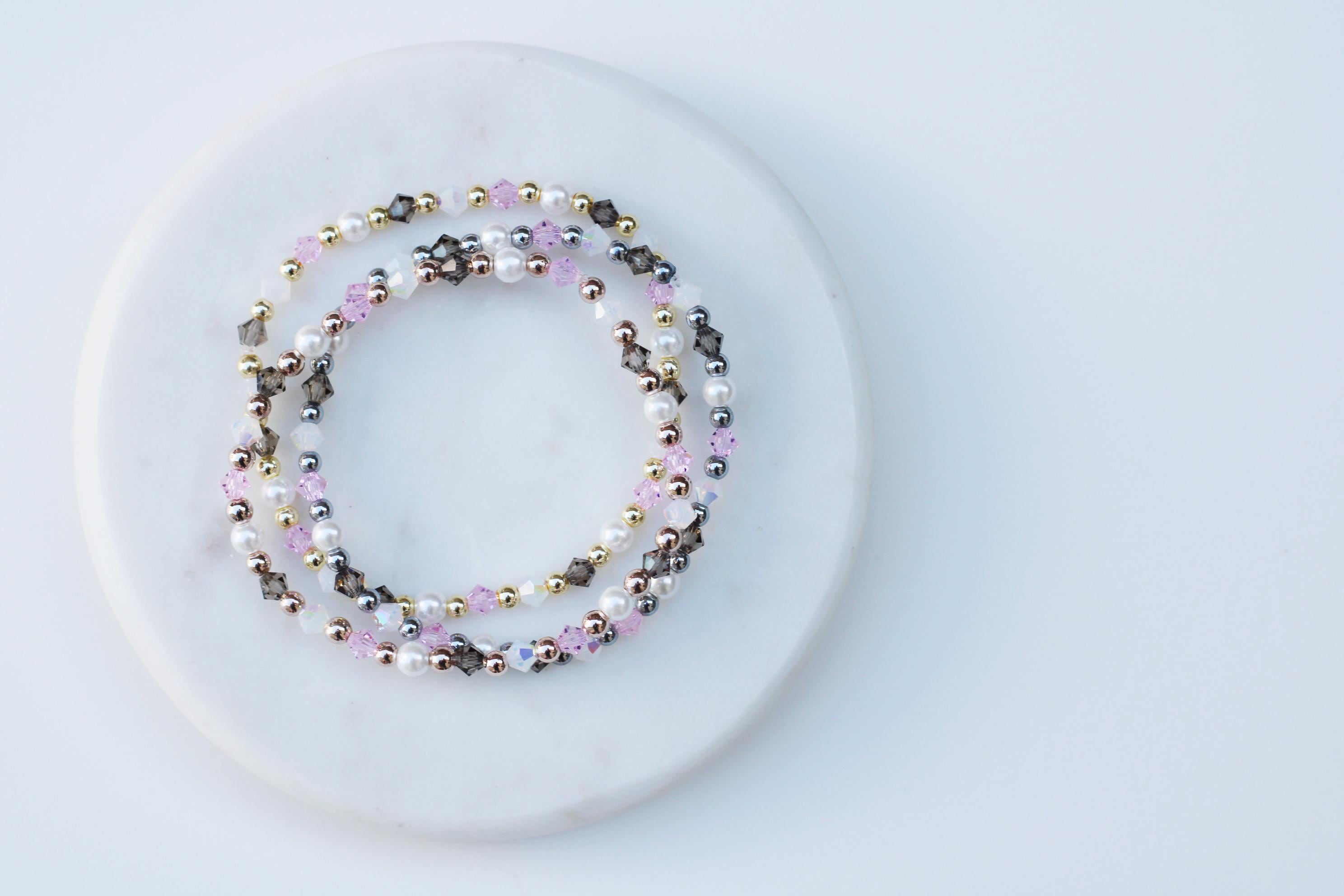Uniquely crafted with 3mm gold, silver or rose gold beads and accented with genuine Czech crystals and pearls.