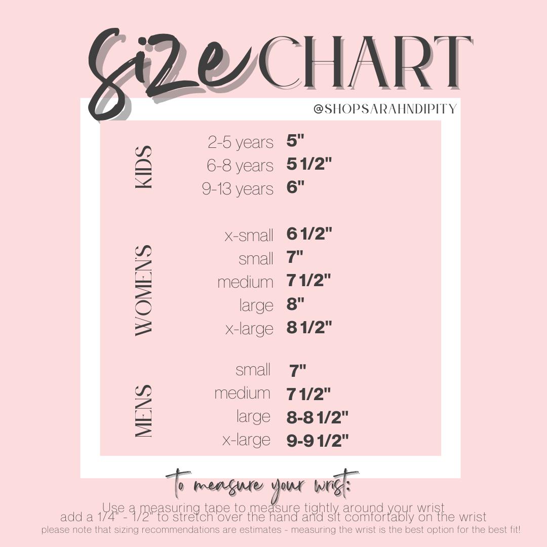 All beaded bracelets are made to order. Size customization is available free of charge. If you'd like a specific size just leave the request in the personalization section at checkout. If no size is specified, your bracelet will be made to the standard 7" sizing.